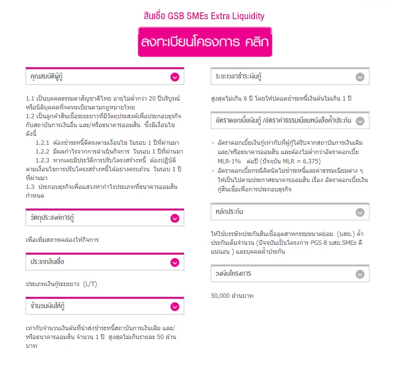 ธนาคารออมสิน เติมสภาพคล่องผู้ประกอบการ SMEs จัด “สินเชื่อ GSB SMEs Extra Liquidity” วงเงินโครงการ 50,000 ล้านบาท วงเงินกู้สูงสุดรายละ 50 ล้านบาท ลงทะเบียนได้ทันทีวันนี้! ที่เว็บไซต์ธนาคารออมสิน www.gsb.or.th