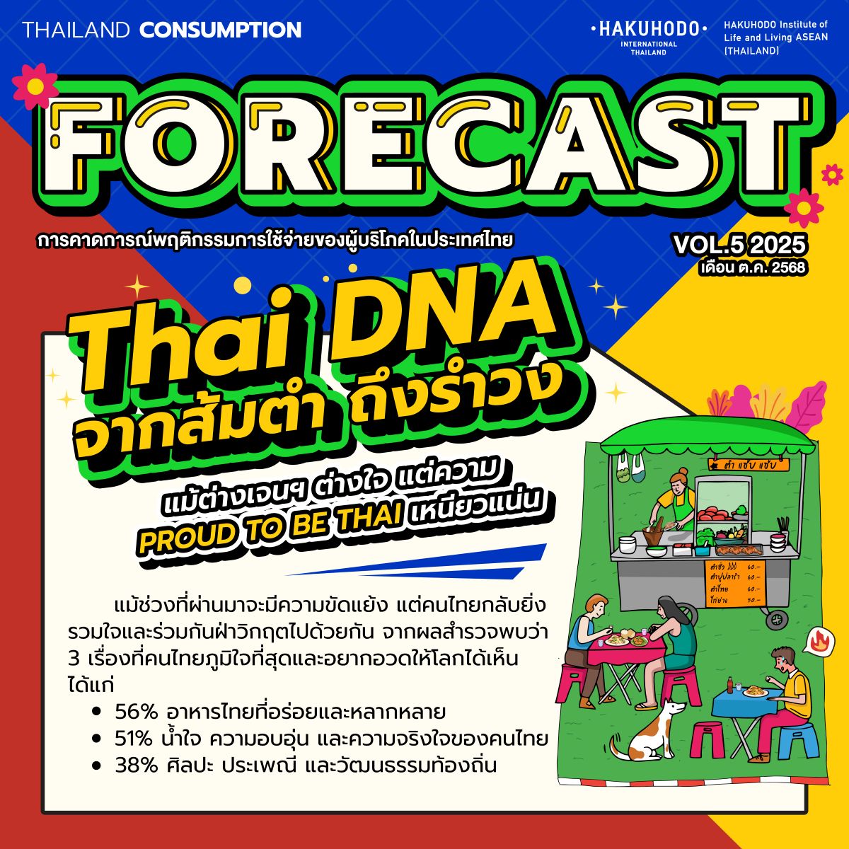 แม้คนไทยจะประสบปัญหามากมายเพียงใด แต่ก็ยัง Proud to be THAI กระแสชาตินิยมกำลังพุ่งแรง คนไทยพร้อมสนับสนุนสิ่งที่ตนเองภูมิใจ ไม่ว่าจะเป็นเรื่อง ศิลปะ วัฒนธรรม ประเพณี รวมไปถึงอาหาร คุณ อรุณโรจน์ เหล่าเจริญวงศ์ รองผู้อำนวยการฝ่ายวางแผนกลยุทธ์ สถาบันวิจัยความเป็นอยู่ฮาคูโฮโด อาเซียน (ประเทศไทย) เห็นว่า นี่ถือเป็นโอกาสทองของแบรนด์ไทยในการร่วมสร้างกระแสปลุกใจ และชวนคนไทยมีส่วนร่วมกับแบรนด์ที่สะท้อนความเป็นไทยอย่างแท้จริง โดยได้ให้แนวทางการทำแคมเปญในช่วงกระแส Thai DNA ไว้ 2 หัวข้อ คือ