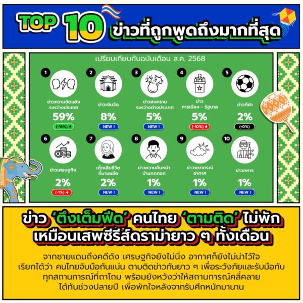 ในช่วงท้ายของผลสำรวจฉบับนี้ คุณ มนะสิทธ์ ลีนานนท์ นักวางแผนกลยุทธ์อาวุโส สถาบันวิจัยความเป็นอยู่ฮาคูโฮโด อาเซียน (ประเทศไทย) ได้กล่าวถึงข่าวที่คนไทยสนใจในขณะนี้ไว้ว่า “คนไทยยังคงจับตาติดตามข่าวปัญหาความขัดแย้งระหว่างประเทศอย่างใกล้ชิด รวมไปถึงคดีดังต่าง ๆ เช่น ข่าวเงินวัด ข่าวความคืบหน้าบ้านกกกอก เป็นต้น จากชายแดนถึงคดีดัง อีกทั้งเศรษฐกิจในประเทศยังคงไม่นิ่ง สภาพอากาศก็แปรเปลี่ยนไม่น่าไว้วางใจ เรียกได้ว่า คนไทยจับมือกันแน่นตามติดข่าวกันยาว ๆ เพื่อระวังและเตรียมพร้อมรับมือกับทุกสถานการณ์ และยังมีความหวังเสมอว่าสถานการณ์จะคลีคลายให้ได้พักผ่อนใจในช่วงปลายปี”