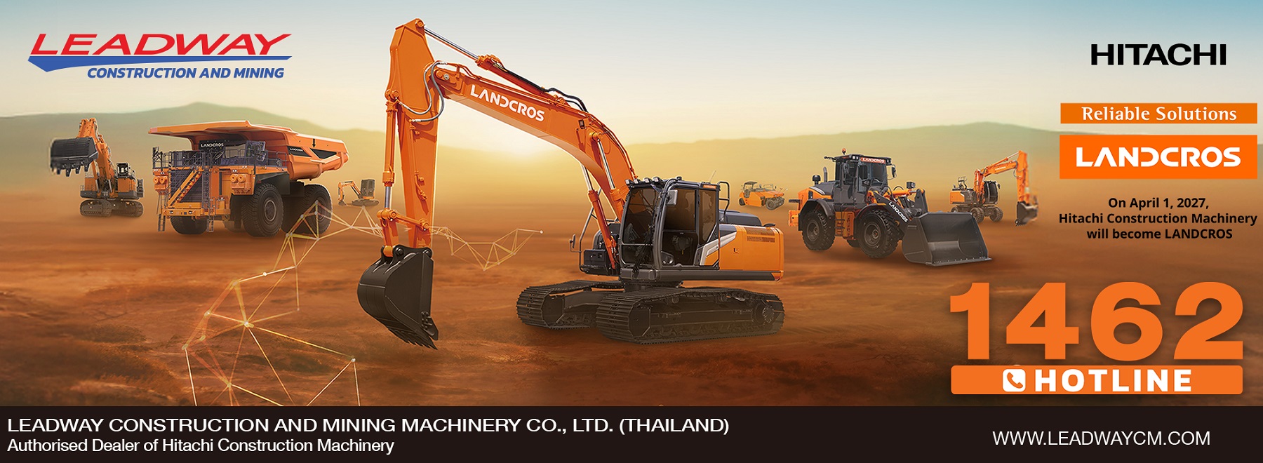 บริษัท ฮิตาชิ คอนสตรัคชัน แมชชีนเนอรี เอเชีย แปซิฟิก (HMAP) มีความยินดีประกาศแต่งตั้งบริษัท ลีดเวย์ คอนสตรัคชั่น แอนด์ ไมนิ่ง แมชชีนเนอร์รี่ จำกัด (LCM) ให้เป็นตัวแทนจำหน่ายอย่างเป็นทางการรายใหม่ในประเทศไทย โดยจะมีผลบังคับใช้ตั้งแต่เดือนพฤศจิกายน พ.ศ. 2568 ความร่วมมือครั้งนี้ถือเป็นก้าวสำคัญในการเสริมสร้างความแข็งแกร่งด้านการดำเนินธุรกิจ และยกระดับการให้บริการแก่ลูกค้าในอุตสาหกรรมหลักทั่วประเทศ
