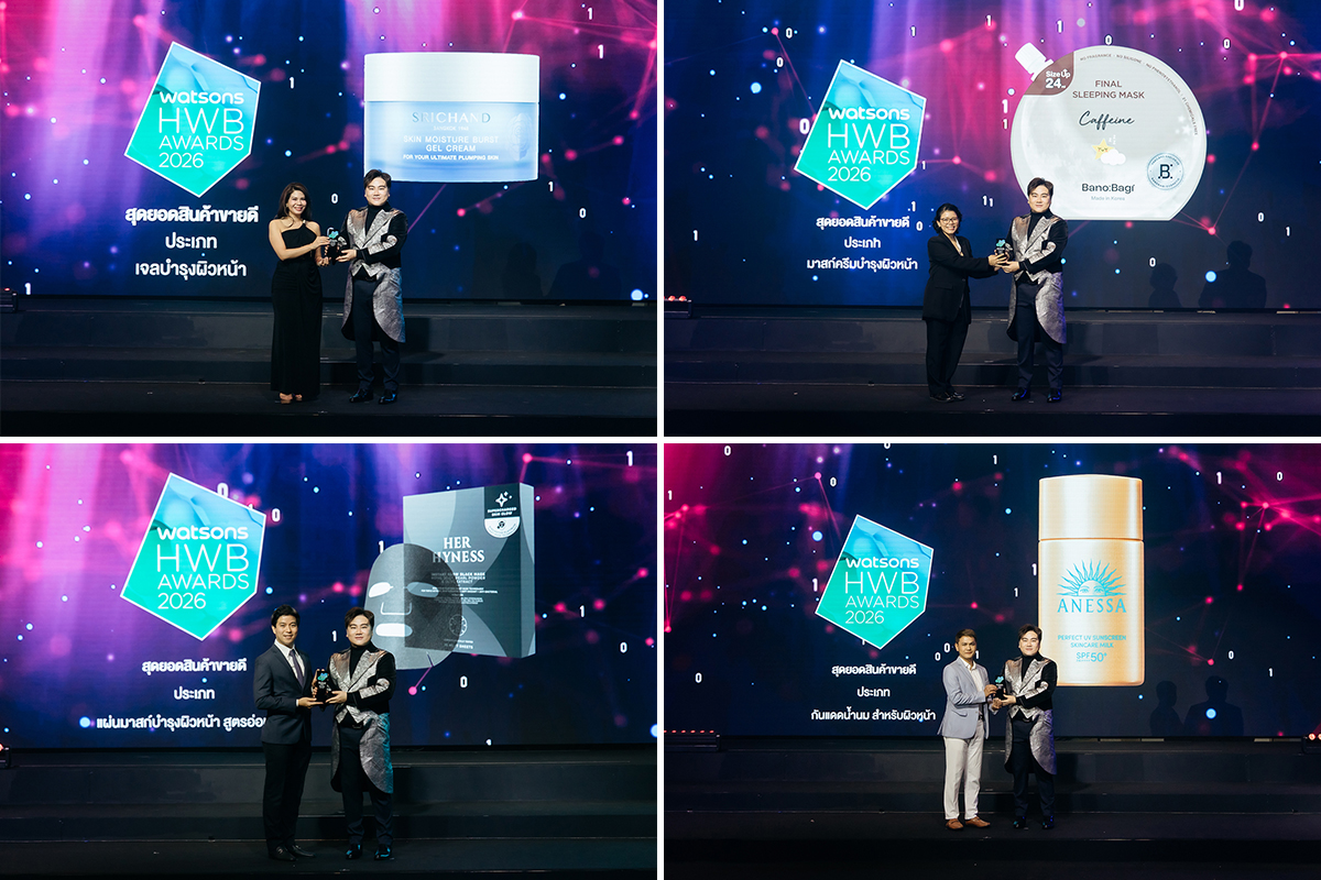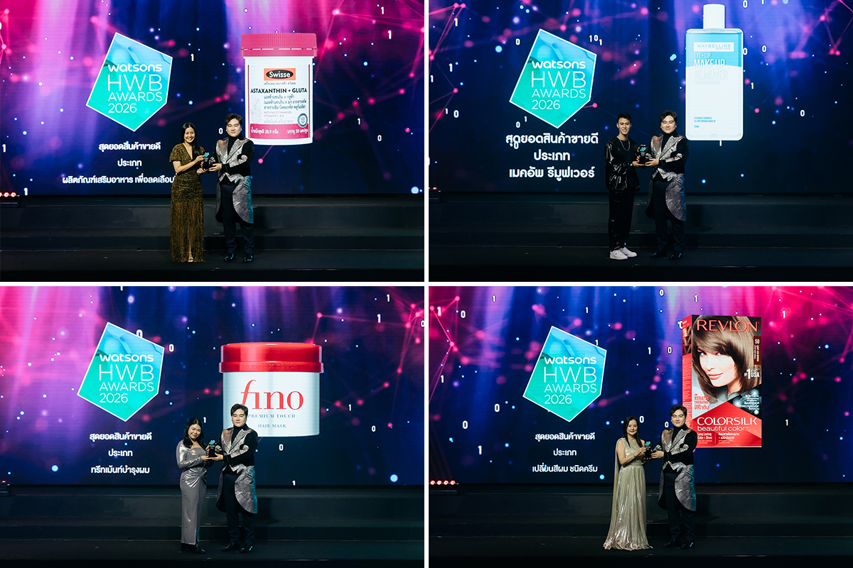 ทั้งนี้ รางวัล Watsons HWB Awards 2026 ถือเป็นอีกหนึ่งรางวัลสำคัญที่สื่อถึงมาตรฐานความสำเร็จของวงการสุขภาพและความงามไทยที่จัดต่อเนื่องกว่า 20 ปี โดยตัดสินจากยอดขายและเสียงตอบรับจริงของผู้บริโภค เปรียบเสมือน “เครื่องหมายรับรองคุณภาพ” ที่มอบความมั่นใจให้ลูกค้าทั่วประเทศ โดยปีนี้มีการมอบรางวัลรวมกว่า 156 รางวัล ครอบคลุมทุกหมวดหมู่สินค้า อาทิ สกินแคร์, เครื่องสำอาง, ผลิตภัณฑ์ดูแลเส้นผม, เวชสำอาง, ผลิตภัณฑ์เพื่อสุขภาพ รวมถึงกลุ่มสินค้าเพื่อความยั่งยืน (Sustainability)