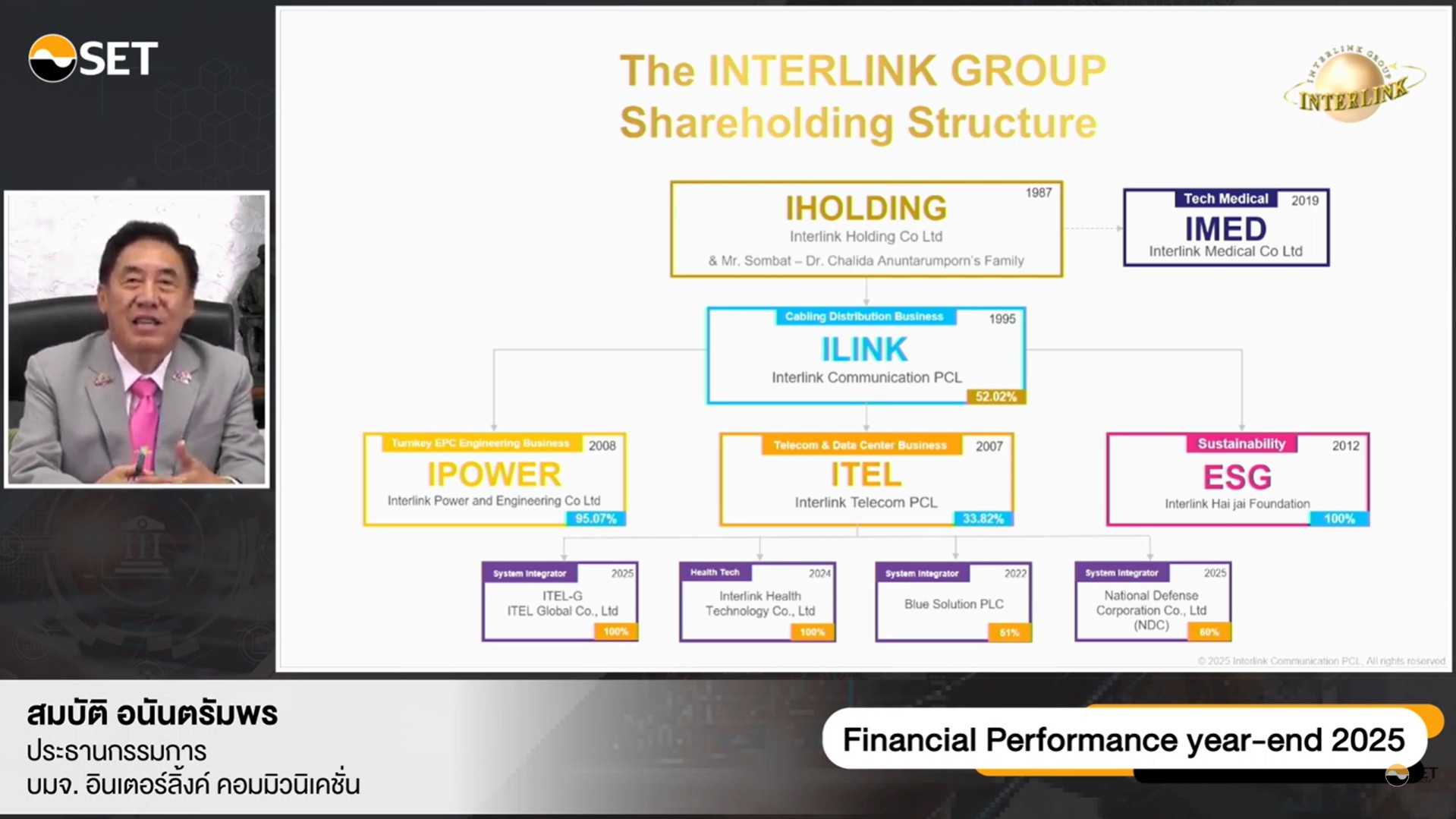 นายสมบัติ อนันตรัมพร กล่าวเพิ่มเติมอีกว่า “ปี 2568 นับเป็นปีแห่งการปรับฐานเชิงกลยุทธ์ และเป็นอีกหนึ่งบทพิสูจน์ถึงความแข็งแกร่งของ กลุ่มบริษัท อินเตอร์ลิ้งค์ฯ แม้ว่ารายได้บางส่วนจะชะลอตัวตามภาวะตลาด แต่บริษัทฯ สามารถรักษาอัตรากำไรให้สูงกว่าเป้าหมายที่กำหนดไว้ได้อย่างต่อเนื่อง สะท้อนถึงความแข็งแกร่งของโครงสร้างธุรกิจ และวินัยทางการเงินที่บริษัทยึดถือมาตลอดกว่า 3 ทศวรรษ ทั้งนี้ บริษัทฯ มองว่าโครงสร้างพื้นฐานด้านพลังงาน และดิจิทัลของประเทศไทยกำลังเข้าสู่ช่วงการลงทุนรอบใหม่ โดย ILINK มีความพร้อมทั้งด้านประสบการณ์ บุคลากร และเครือข่ายพันธมิตรทางธุรกิจ เพื่อรองรับโครงการขนาดใหญ่ในระดับประเทศ ซึ่งจะเป็นแรงผลักดันสำคัญต่อการเติบโตในระยะยาว ภายใต้แผนธุรกิจระยะ 5 ปี (2569–2573) ที่มุ่งเน้นการสร้างการเติบโตสร้างคุณค่าให้กับผู้ถือหุ้น นักลงทุน อย่างมีคุณภาพ และยั่งยืนในระยะยาวต่อไป”