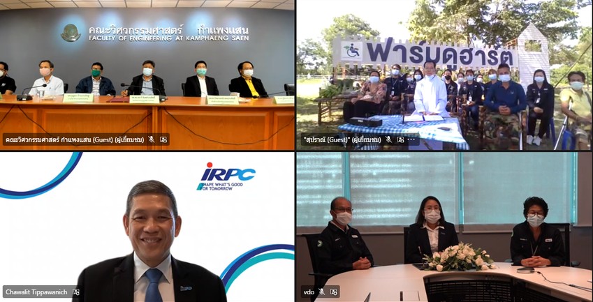 เมื่อวันที่ 21 มิถุนายน 2564 คุณชวลิต ทิพพาวนิช ประธานเจ้าหน้าที่บริหารและกรรมการผู้จัดการใหญ่ บริษัท ไออาร์พีซี จำกัด (มหาชน) รองศาสตราจารย์ ดร.เชาว์ อินทร์ประสิทธิ์ คณบดีคณะวิศวกรรมศาสตร์กำแพงแสน มหาวิทยาลัยเกษตรศาสตร์ และ บาทหลวงอุทัย ถาวร ผู้อำนวยการศูนย์ส่งเสริมพัฒนาคนพิการสังฆมณฑลอุดรธานี