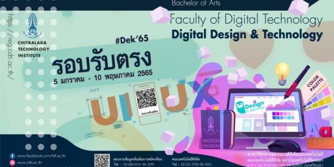 สถาบันเทคโนโลยีจิตรลดา เปิดรับสมัครนักเรียน นักศึกษาใหม่ ประจำปีการศึกษา 2565 ในระดับ ปวช. ประเภทวิชาพาณิชยกรรม อุตสาหกรรม เทคโนโลยีสารสนเทศและการสื่อสาร อุตสาหกรรมบันเทิงและดนตรี และคหกรรม และระดับปริญญาตรีคณะบริหารธุรกิจ คณะเทคโนโลยีอุตสาหกรรม และคณะเทคโนโลยีดิจิทัล เปิดรับสมัครตั้งแต่วันนี้เป็นต้นไปทาง www.cdti.ac.th สอบถามข้อมูลเพิ่มเติมโทร 0-2280-0551 ต่อ 3295,3296 หรือ Line @reg.cdti