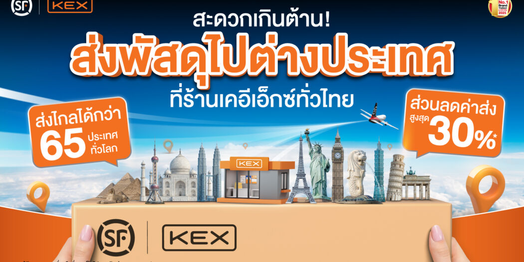 KEX มอบส่วนลดสูงสุดถึง 30%** สำหรับการส่งพัสดุไปต่างประเทศ เพียงนำโค้ดไปใช้ในแอปฯ KEX และ แอปฯ SF International หรือแจ้งโค้ดกับพนักงาน เมื่อส่งพัสดุไปต่างประเทศที่ร้านเคอีเอ็กซ์ ตั้งแต่วันนี้ – 30 เมษายน 2569 เพื่อสนับสนุนผู้ประกอบการไทยในการขยายตลาดสู่ต่างประเทศได้ง่ายขึ้นและคุ้มค่ามากกว่าเดิม ลูกค้าสามารถจองบริการ คำนวณราคา และติดตามพัสดุได้ผ่านแอปพลิเคชันดังกล่าว ทำให้ทุกการจัดส่งเป็นเรื่องง่าย รวดเร็ว และปลอดภัยตลอดเส้นทาง