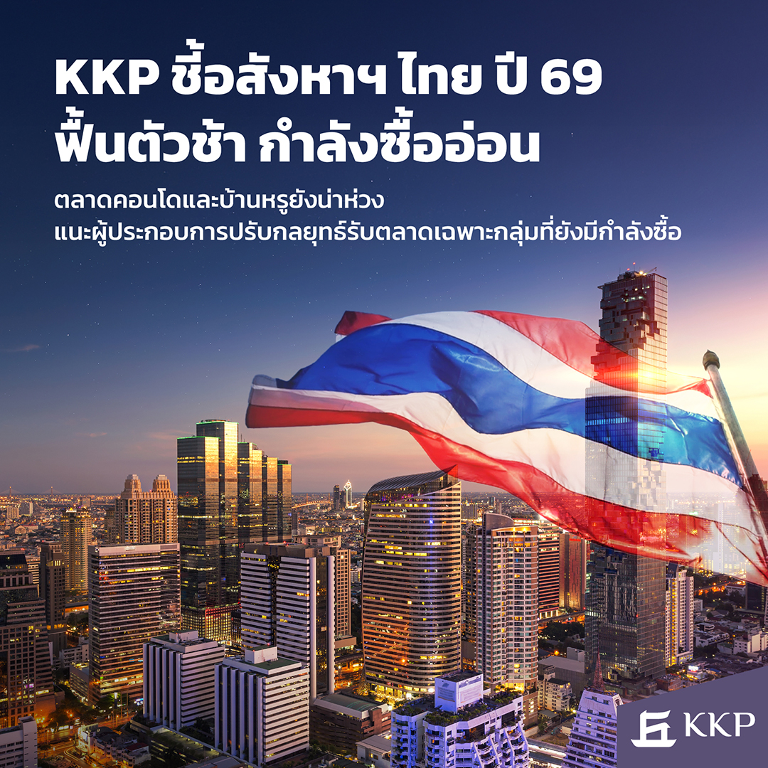 KKP ชี้อสังหาฯ ไทยปี 69 ฟื้นตัวช้า กำลังซื้ออ่อน ตลาดคอนโดและบ้านหรูยังน่าห่วง แนะผู้ประกอบการปรับกลยุทธ์รับตลาดเฉพาะทางโต