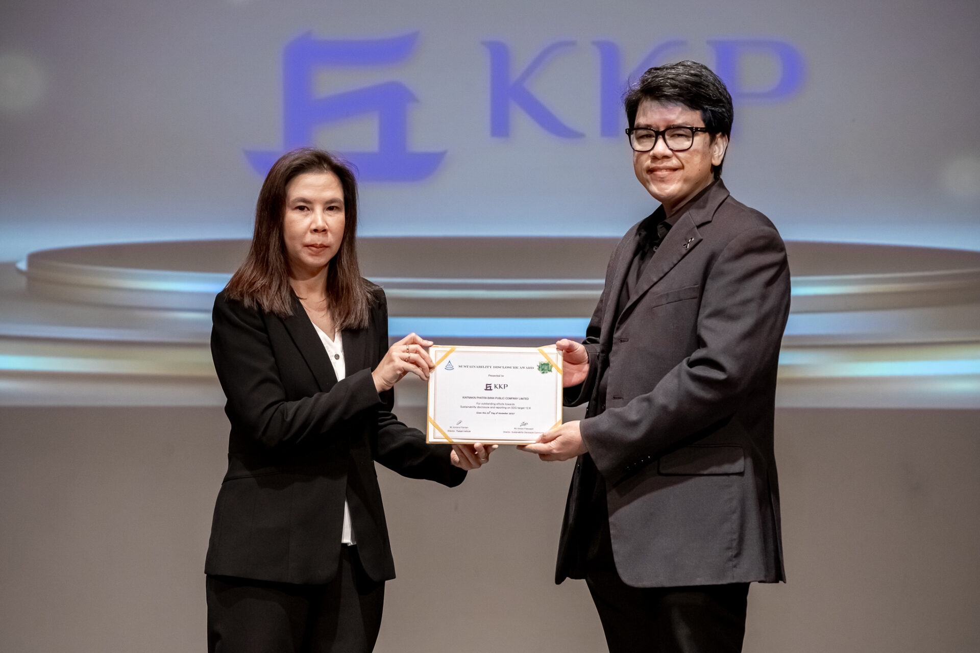 กลุ่มธุรกิจการเงินเกียรตินาคินภัทร (KKP) ได้รับรางวัล “Sustainability Disclosure Award 2025” หรือรางวัลเกียรติคุณการเปิดเผยข้อมูลความยั่งยืน จาก สถาบันไทยพัฒน์ เป็นปีที่ 7 ติดต่อกัน สะท้อนความมุ่งมั่นของ KKP ในการเปิดเผยข้อมูลด้านความยั่งยืนอย่างครบถ้วน ชัดเจน น่าเชื่อถือ และโปร่งใสตามเกณฑ์มาตรฐานที่ได้รับการยอมรับ พิธีมอบรางวัลจัดขึ้น ณ ห้องออดิทอเรียม ชั้น 5 หอศิลปกรุงเทพฯ โดยมี ดร.วราพงศ์ วงศ์วัชรา หัวหน้าสำนักงานความยั่งยืน กลุ่มธุรกิจการเงินเกียรตินาคินภัทร เป็นผู้แทนรับรางวัล