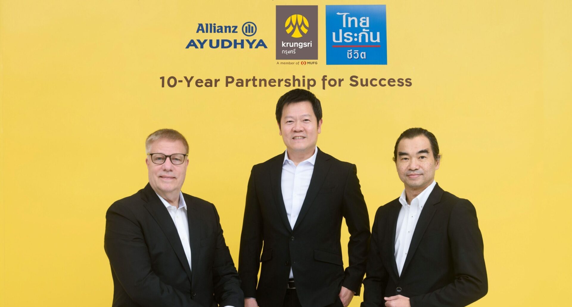 กรุงศรี (ธนาคารกรุงศรีอยุธยา จำกัด (มหาชน) และบริษัทในเครือ) ร่วมกับ บริษัท อลิอันซ์ อยุธยา ประกันชีวิต จำกัด (มหาชน) และบริษัท ไทยประกันชีวิต จำกัด (มหาชน) สานต่อความร่วมมือด้านการเสนอขายประกันชีวิตผ่านช่องทางสาขาของธนาคาร (Bancassurance) อย่างต่อเนื่อง เป็นระยะเวลา 10 ปี ตอกย้ำความมุ่งมั่นในการส่งมอบโซลูชันทางการเงินที่ตอบโจทย์การวางแผนความมั่นคงของครอบครัวและด้านสุขภาพอย่างครบวงจรให้แก่ลูกค้า