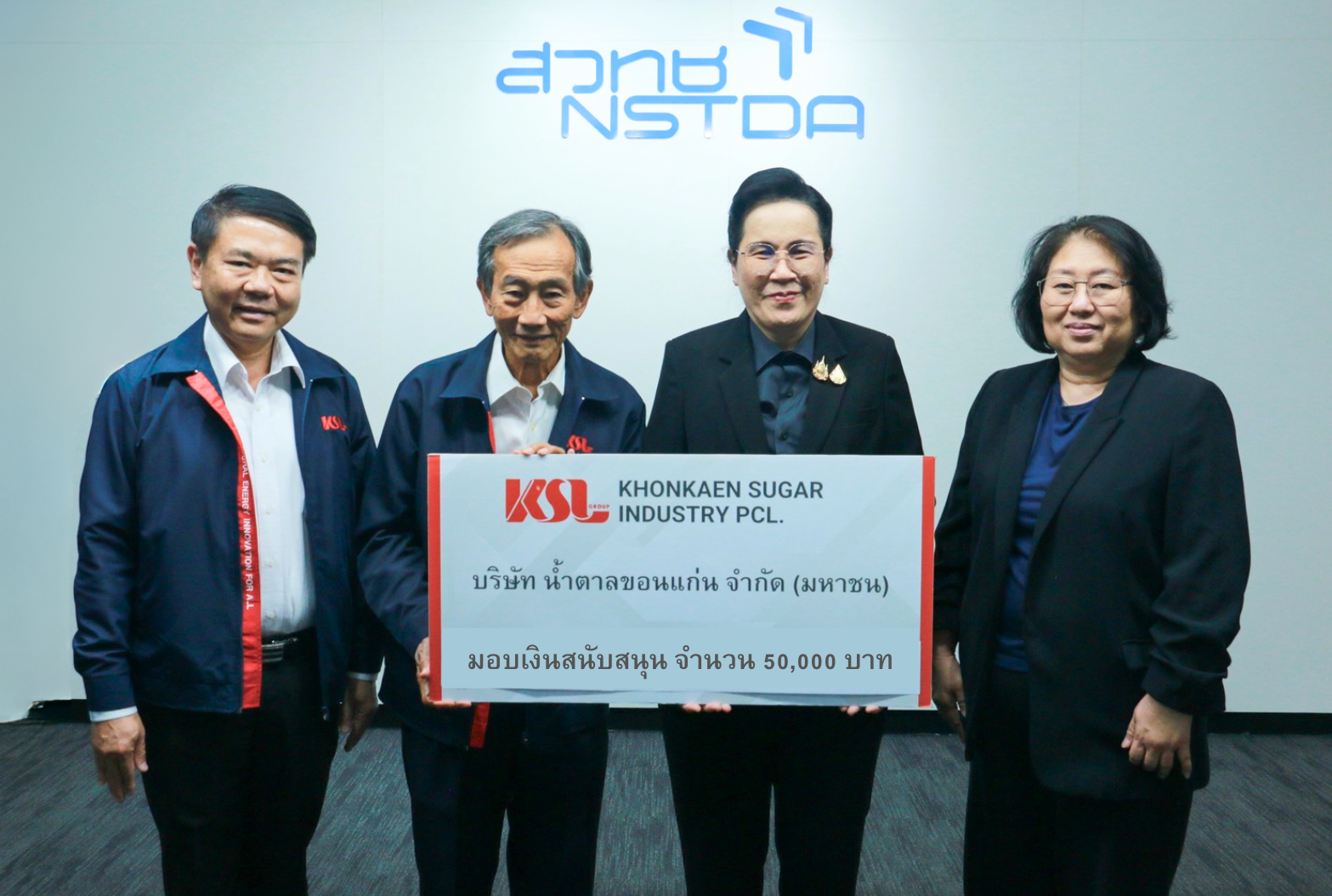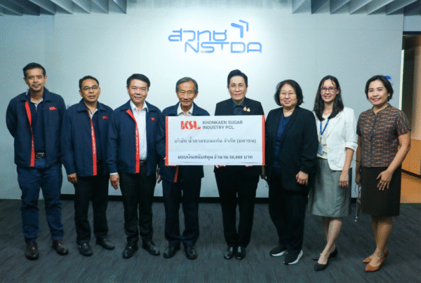 นายธีระ สงวนดีกุล รองกรรมการผู้จัดการใหญ่ และนายโสมนัส โพธิสัตย์ รองกรรมการผู้จัดการใหญ่ บริษัท น้ำตาลขอนแก่น จำกัด (มหาชน) และบริษัทในเครือ (KSL Group) มอบเงินสนับสนุนจัดงานประชุมวิชาการประจำปี 2569 (NAC2026) ระหว่างวันที่ 24 – 28 เมษายน 2569 ภายใต้หัวข้อ “เศรษฐกิจยั่งยืนด้วยวิทยาศาสตร์และเทคโนโลยี (Sustainable Economy through Science and Technology)” นิทรรศการแสดงผลงานวิจัยและนวัตกรรมภายใต้ยุทธศาสตร์การขับเคลื่อนประเทศไทยด้วยวิทยาศาสตร์และเทคโนโลยีจาก สวทช. และพันธมิตรทางวิชาการ สานต่อความร่วมมือในการพัฒนาและต่อยอดผลิตภัณฑ์จากอ้อย ขับเคลื่อนพันธกิจด้านการส่งเสริมนวัตกรรมและสนับสนุนงานวิจัยเพื่อพัฒนาอุตสาหกรรมอ้อยและน้ำตาลไทยอย่างยั่งยืนขององค์กร โดยมี ดร. จุฬารัตน์ ตันประเสริฐ รองผู้อำนวยการ สำนักงานพัฒนาวิทยาศาสตร์และเทคโนโลยีแห่งชาติ (สวทช.). และนางสาววทันยา สุทธิเลิศ ผอ.ฝ่ายธุรกิจสัมพันธ์ เป็นผู้รับมอบ ณ อาคารสำนักงานพัฒนาวิทยาศาสตร์และเทคโนโลยีแห่งชาติ (สวทช.) ถ.พระราม 6 เขตราชเทวี กรุงเทพฯ เมื่อเร็วๆ นี้