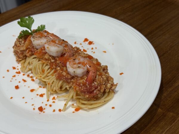 อาหารเย็น (Dinner): สัมผัสความอบอุ่นผ่าน Thai Fusion 3-Courseที่รวบรวมสูตรอาหารจากควของคุณแม่ ที่รสชาติฝีมืออร่อยวัยเกือบ 70 ปี ผสมผสานกลิ่นอายรสชาติจากทั่วโลกเข้ากับวัตถุดิบท้องถิ่นอย่างลงตัว เช่น สปาเกตตีน้ำพริกอ่องกุ้งไก่ พร้อมกุ้งย่าง สปาเกตตีเส้นคุณภาพปรุงแบบอัลเดนเต้ คลุกเคล้ากับซอสน้ำพริกอ่อง เขียงใหม่ที่เคี่ยวอย่างช้า ๆ จากมะเขือเทศสด ให้รสชาติกลมกล่อมตามธรรมชาติ เสิร์ฟพร้อมกุ้งสดเนื้อแน่น เพิ่มความหอมละมุนด้วยสมุนไพรอ่อน ๆ เป็นเมนูที่อิ่มพอดี ย่อยง่าย และให้พลังงานอย่างสมดุล