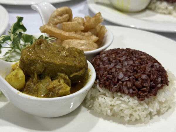 แกงฮังเลสูตรลับเฉพาะคุณแม่ ที่คัดสรรเนื้อหมูปลอดสารเคมี นำมาเคี่ยวอย่างพิถีพิถันนานกว่า 6 ชั่วโมง จนเนื้อนุ่มละมุนลิ้น เสิร์ฟคู่กับข้าวสองสีที่อุดมด้วยคุณค่าทางสารอาหาร เพื่อมอบรสชาติท้องถิ่นที่จริงใจและส่งต่อ ความรักผ่านรสมือของคุณแม่ในทุกคำ