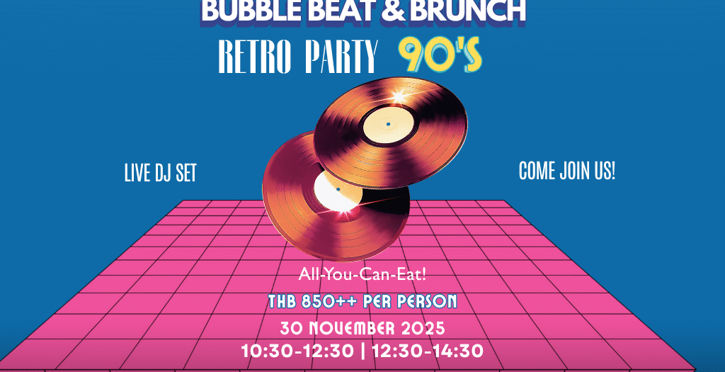 สำรองที่นั่งสำหรับประสบการณ์บรันช์ในธีมยุค 90s สุดพิเศษนี้ และเชิญชวนให้แต่งกายในสไตล์ยุค 90s ที่คุณชื่นชอบที่สุด เพื่อดื่มด่ำกับบรรยากาศเรโทรอย่างเต็มที่!