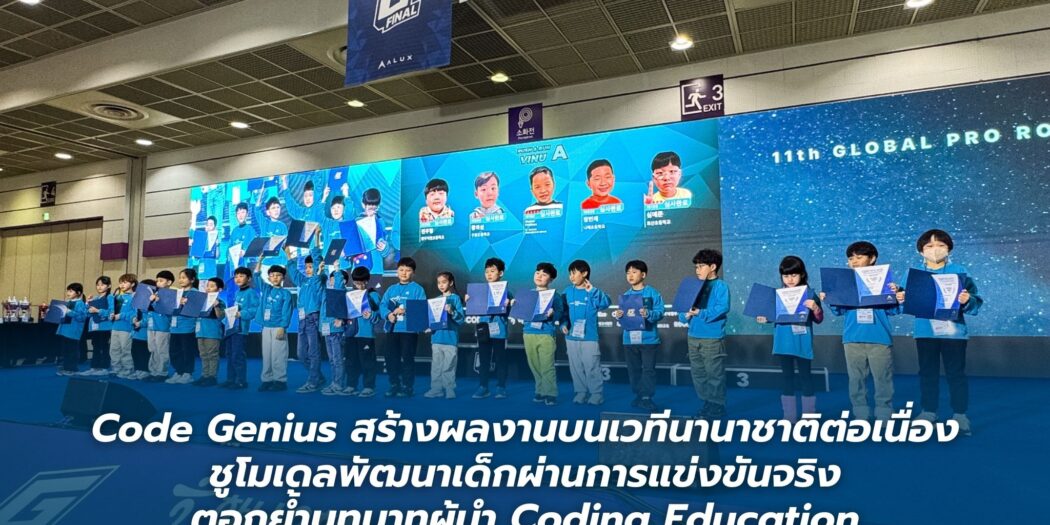 Code Genius สถาบันพัฒนาทักษะ Coding สำหรับเยาวชน ภายใต้การบริหารงานของ LEARN Corporation ตอกย้ำบทบาทผู้นำด้าน Coding Education ของไทย ผ่านโมเดลการพัฒนาเด็กด้วยการแข่งขันจริงที่เชื่อมโยงการเรียนรู้กับประสบการณ์ในโลกปัจจุบัน และสร้างผลลัพธ์บนเวทีระดับนานาชาติอย่างต่อเนื่อง