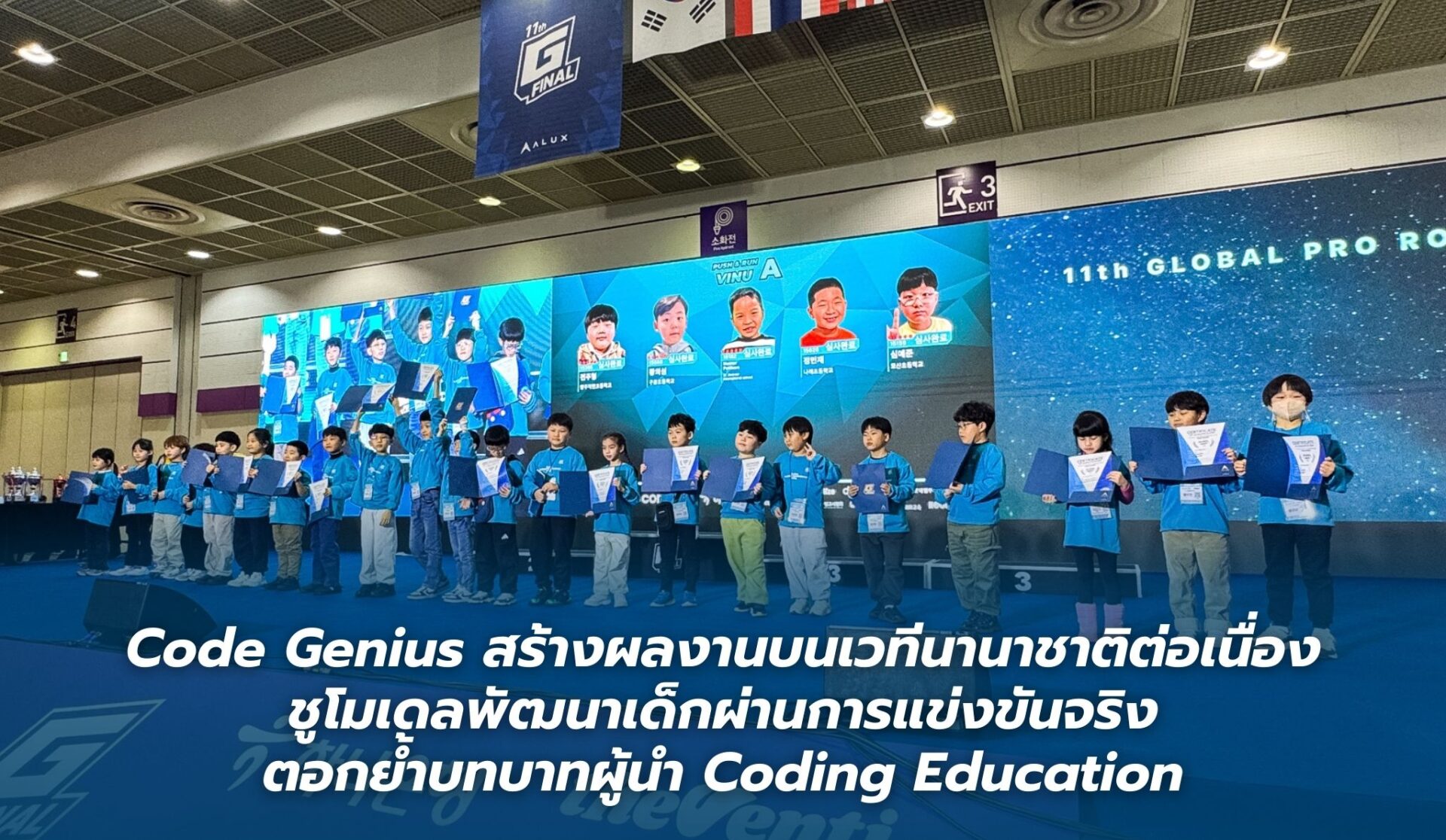 ล่าสุด Code Genius ได้นำทีมนักเรียนไทยเข้าร่วมการแข่งขันระดับนานาชาติอย่างต่อเนื่อง โดยสามารถคว้ารางวัลรวมกว่า 15 รางวัล จากการแข่งขัน 2025 G-PRC Global Pro Robot Championship ณ สาธารณรัฐเกาหลีใต้ รวมถึงรางวัลชนะเลิศจากสนามการแข่งขันหลัก สะท้อนศักยภาพของเด็กไทยด้าน Coding และ Robotics บนเวทีระดับโลก การแข่งขันครั้งนี้ยังได้รับเกียรติจาก คุณจิดาภา ลำยอง ตัวแทนอัครราชทูต สถานเอกอัครราชทูตไทย ณ กรุงโซล ที่เข้าร่วมให้กำลังใจและถ่ายภาพร่วมกับนักเรียนระหว่างการแข่งขัน