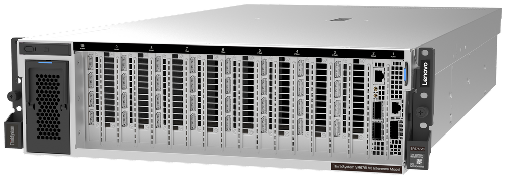 • เลอโนโว ThinkSystem SR675i: เซิร์ฟเวอร์ประมวลผล AI ประสิทธิภาพสูง ที่ได้รับการออกแบบมาเพื่อประมวลผลโมเดลภาษาขนาดใหญ่ได้อย่างสมบูรณ์ พร้อมรองรับการขยายระบบได้ในระดับสูง เหมาะสำหรับภาระงานขนาดใหญ่ที่สุดและการจำลองสถานการณ์ ขั้นสูงในอุตสาหกรรมการผลิต การดูแลสุขภาพในสภาวะวิกฤต และการบริการทางการเงิน