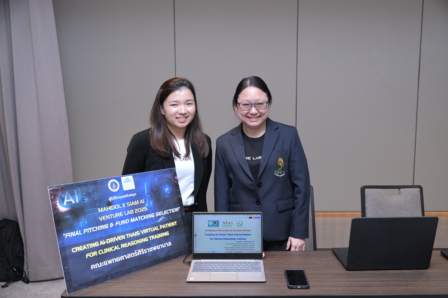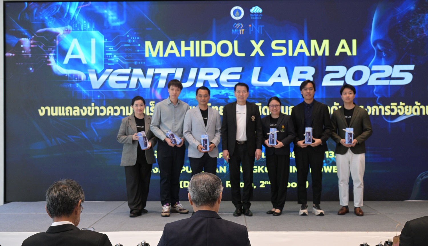 วันที่ 19 มีนาคม 2569 มหาวิทยาลัยมหิดล ร่วมกับ Siam AI Corporation แถลงความสำเร็จของโครงการ Mahidol x Siam AI Venture Lab 2025 โครงการบ่มเพาะนวัตกรรมปัญญาประดิษฐ์ด้านสุขภาพ (AI Healthcare) ที่มุ่งผลักดันผลงานวิจัยสู่การพัฒนา Startup ด้าน Deep Tech ของประเทศไทย พร้อมคัดเลือกทีมผู้พัฒนานวัตกรรมที่มีศักยภาพเข้าสู่รอบนำเสนอผลงานสุดท้าย 6 ทีม จากผู้สมัครทั้งหมด 9 ทีม เพื่อพัฒนาเทคโนโลยี AI สู่การใช้งานจริงในระบบสาธารณสุขและอุตสาหกรรมสุขภาพ