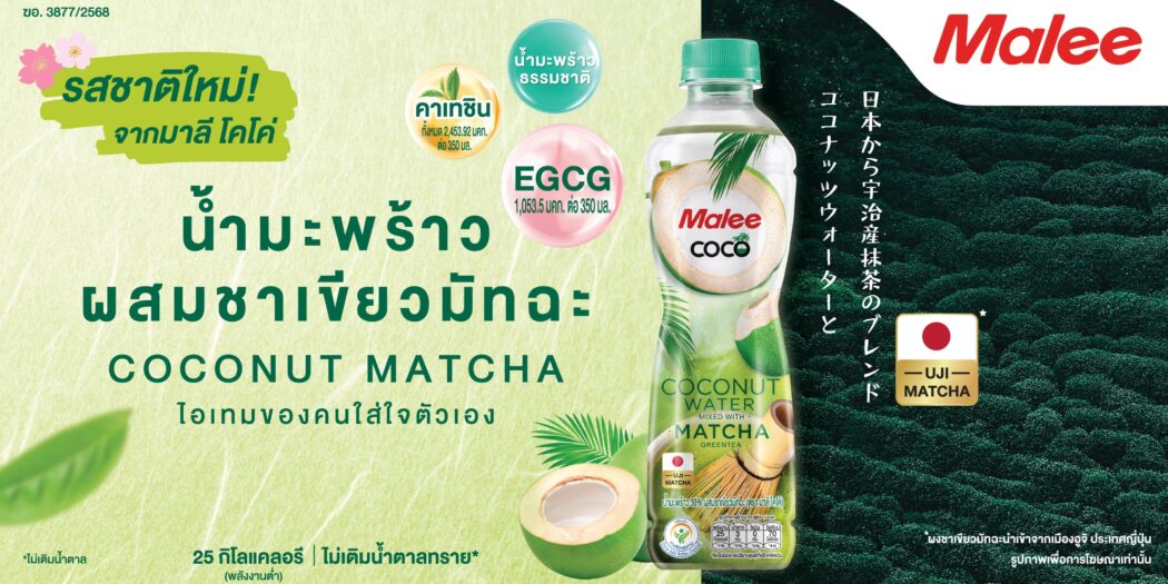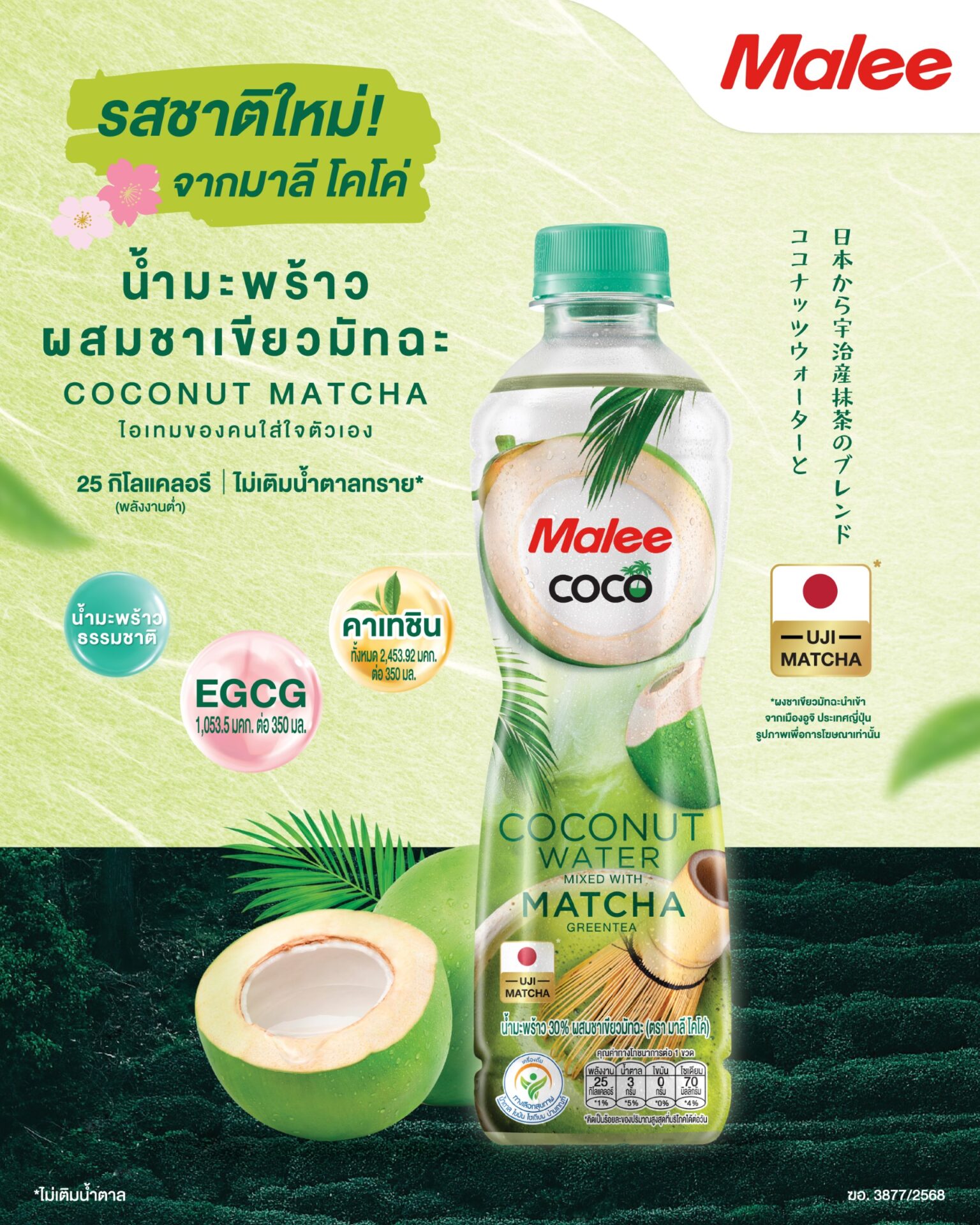 บมจ. มาลี กรุ๊ปหรือ MALEE  เขย่าตลาดเครื่องดื่มน้ำมะพร้าวพร้อมดื่ม สร้างปรากฏการณ์ใหม่ ขยายพอร์ตสินค้าตอบโจทย์ไลฟ์สไตล์ที่หลากหลายเป็นมากกว่าน้ำผลไม้ เปิดตัว ‘Malee COCO Coconut Matcha’ ครั้งแรกการผสานที่ลงตัวของน้ำมะพร้าวธรรมชาติแท้จากลูกและชาเขียวอูจิมัทฉะจากญี่ปุ่น ชูจุดเด่น “อร่อย สดชื่น” ทางเลือกใหม่ของผู้ที่ใส่ใจสุขภาพ ผสานสารประกอบธรรมชาติจาก EGCG และคาเทชิน ให้รสชาติและประสบการณ์ที่เป็นเอกลักษณ์ ตอบโจทย์อินไซต์คนรุ่นใหม่ที่ใส่ใจสุขภาพแบบองค์รวมและมีไลฟ์สไตล์แอคทีฟใช้ชีวิตแบบบาลานซ์ ปักธงแบรนด์ชั้นนำตลาดน้ำมะพร้าว มุ่งเพิ่มส่วนแบ่งตลาดเป็น 35% ในปี 2569