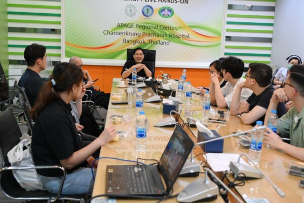 นายแพทย์วีรพล เขมะรังสรรค์ หัวหน้าศูนย์ตรวจรักษาผ่าตัดผ่านกล้องกรุงเทพมหานคร โรงพยาบาลเจริญกรุงประชารักษ์ ร่วมขับเคลื่อนองค์ความรู้และการพัฒนาศักยภาพทางการแพทย์ถ่ายทอดองค์ความรู้และเทคนิคการผ่าตัดผ่านกล้องสมัยใหม่ให้แก่คณะสูตินรีแพทย์จากไต้หวัน ในงานประชุมวิชาการและการฝึกอบรมเชิงปฏิบัติการระดับนานาชาติ “NOTES International Workshop: LIVE HANDS-ON (Live Demonstration – Advanced in NOTES Hysterectomy)” ณ ห้องประชุมศูนย์ตรวจรักษาและผ่าตัดผ่านกล้อง โรงพยาบาลเจริญกรุงประชารักษ์ ศูนย์ความเป็นเลิศด้านการผ่าตัดผ่านกล้อง กรุงเทพมหานคร ภายใต้ Thailand APAGE Regional Center