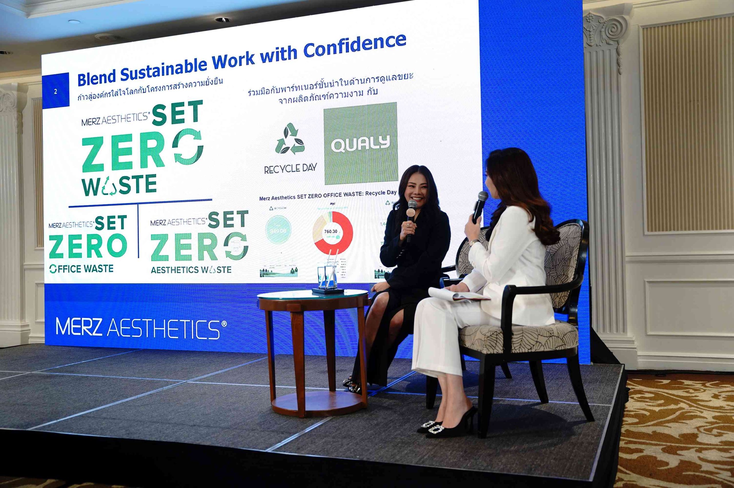 นอกจากการสร้างความเชื่อมั่นแก่คู่ค้าและผู้บริโภค ทิศทางสำหรับองค์กรในปี 2567 เมิร์ซ เอสเธติกส์ (ประเทศไทย) มุ่งสร้างองค์กรที่ใส่ใจในความยั่งยืนไปสู่ชุมชนและสังคม ริเริ่มที่จะพัฒนาแนวคิดและโครงการด้านการรักษาสิ่งแวดล้อมร่วมกับคู่ค้า คลินิกและคนในองค์กรไปพร้อมๆ กัน เริ่มต้นจากการผลักดันโครงการจัดการขยะและการรีไซเคิลบรรจุภัณฑ์เสริมความงามและอุปกรณ์อย่างถูกวิธี ภายใต้ชื่อ ‘Merz Aesthetics Zero Waste’