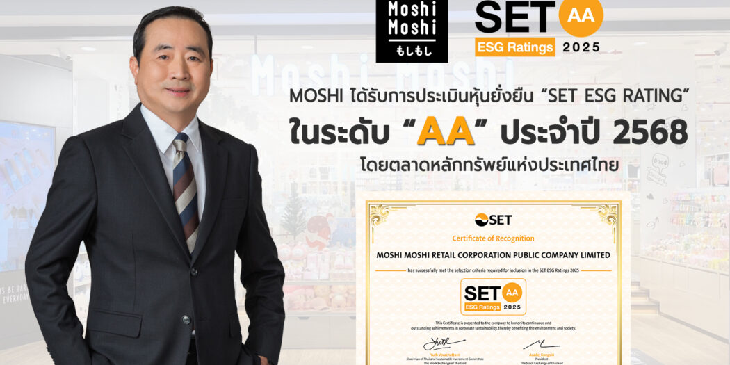 “MOSHI” คว้าหุ้นยั่งยืน SET ESG Ratings ปี 2568 ระดับ “AA” ชูแนวคิด ‘Make Sustainability part of Your Everyday Life’ สร้างการเติบโตควบคู่ความรับผิดชอบต่อสังคมและสิ่งแวดล้อม