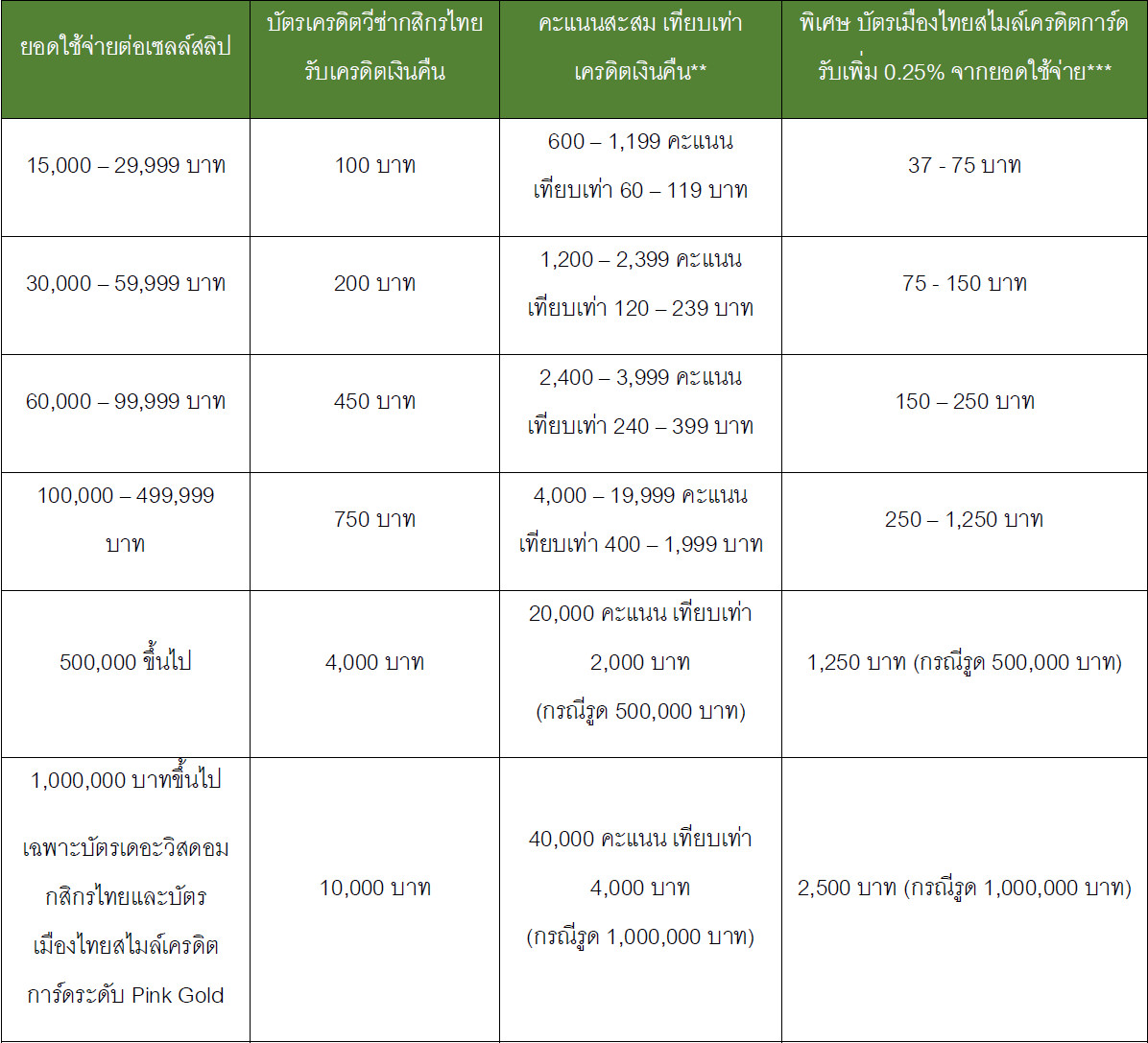 หมายเหตุ: จำกัดการรับเครดิตเงินคืนสูงสุด 10,000 บาท/ท่าน ตลอดรายการ เฉพาะบัตร THE WISDOM กสิกรไทย และบัตรเมืองไทยสไมล์เครดิตการ์ดระดับ Pink Gold จึงจะสามารถรับเงินคืน 10,000 บาทได้