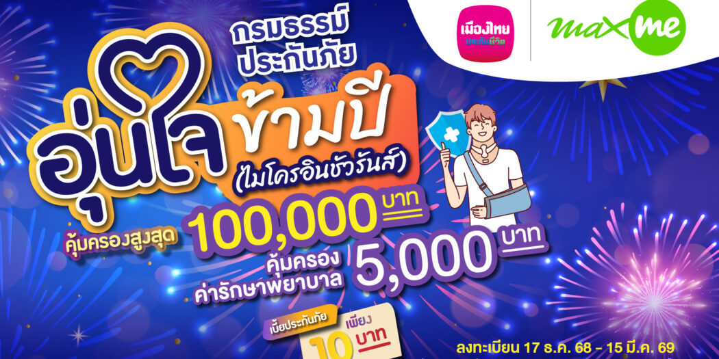 เมืองไทยประกันชีวิต ผนึกกำลัง แมกซ์ โซลูชัน เซอร์วิส บริษัทในเครือพีทีจี  เพิ่มความอุ่นใจต้อนรับเทศกาลปีใหม่แก่สมาชิก Max Card ทั่วประเทศ ผ่านกรมธรรม์ประกันภัยอุ่นใจข้ามปี (ไมโครอินชัวรันส์)ประกันภัยอุบัติเหตุกลุ่มที่ให้ความคุ้มครองครอบคลุมทั้งด้านชีวิตและค่ารักษาพยาบาลเนื่องจากอุบัติเหตุ เพียงใช้แมกซ์พอยท์ 100 คะแนน แลกรับสิทธิ์ผ่านช่องทางแอปพลิเคชัน Max Me  เริ่มตั้งแต่วันที่ 17 ธันวาคม 2568 – 15 มีนาคม 2569 (จำนวนสิทธิ์ 1,000 สิทธิ์)