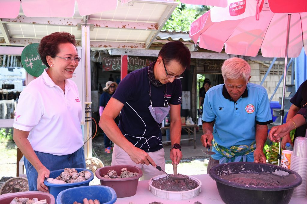 อีกทั้งยังมอบอุปกรณ์ในการปรับปรุงซ่อมแซมโรงรับจำนำปู ที่จัดตั้งมาตั้งแต่ปี พ.ศ. 2558 ที่ทำหน้าที่รับจำนำปูม้าที่มีไข่นอกกระดอง มาจากชาวประมง เพื่อนำมาเพาะเลี้ยงขยายพันธุ์ โดยมีนายนรงค์ ม่วงทองคำ เป็นประธานศูนย์ฯ นอกจากนี้ ยังได้ร่วมกันปล่อยพันธุ์ปูม้า จากโรงรับจำนำปูสู่ท้องทะเล เพื่อเป็นการร่วมอนุรักษ์และขยายพันธุ์ปูม้าให้อยู่คู่กับทะเลชุมพรและทะเลอ่าวไทย