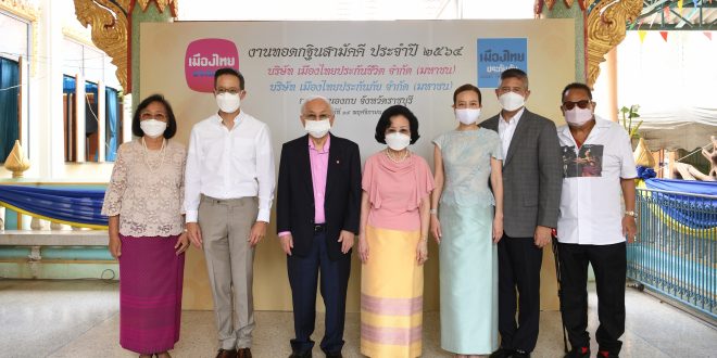 นายโพธิพงษ์ ล่ำซำ ประธานกรรมการ บริษัท เมืองไทยประกันชีวิต จำกัด (มหาชน) และบริษัท เมืองไทยประกันภัย จำกัด (มหาชน) นางยุพา ล่ำซำ เป็นประธานในพิธีถวายผ้ากฐินสามัคคี ประจำปี 2564 เพื่อนำปัจจัยไปใช้ในการก่อสร้างศาลาธรรมสังเวชของวัดหนองกบ ตำบลหนองกบ อำเภอบ้านโป่ง จังหวัดราชบุรี โดยมีนางนวลพรรณ ล่ำซำ กรรมการผู้จัดการและประธานเจ้าหน้าที่บริหาร นายภูมิชาย ล่ำซำ ที่ปรึกษากรรมการผู้จัดการ บริษัท เมืองไทยประกันภัย จำกัด (มหาชน) พ.ต.อ. ณรัชต์ เศวตนันทน์ นายสาระ ล่ำซำ ประธานเจ้าหน้าที่บริหาร และนางภคินีนาถ ติยะชาติ ที่ปรึกษาประธานเจ้าหน้าที่บริหาร บริษัท เมืองไทยประกันชีวิต จำกัด (มหาชน) รวมถึงผู้บริหารและพนักงานของกลุ่มเมืองไทยเข้าร่วมในพิธี โอกาสนี้ ผู้มีจิตศรัทธา บริษัทคู่ค้า ลูกค้า ผู้บริหารและพนักงานกลุ่มเมืองไทยฯ ได้ร่วมทำบุญในโอกาสดังกล่าว ณ วัดหนองกบ ตำบลหนองกบ อำเภอบ้านโป่ง จังหวัดราชบุรี