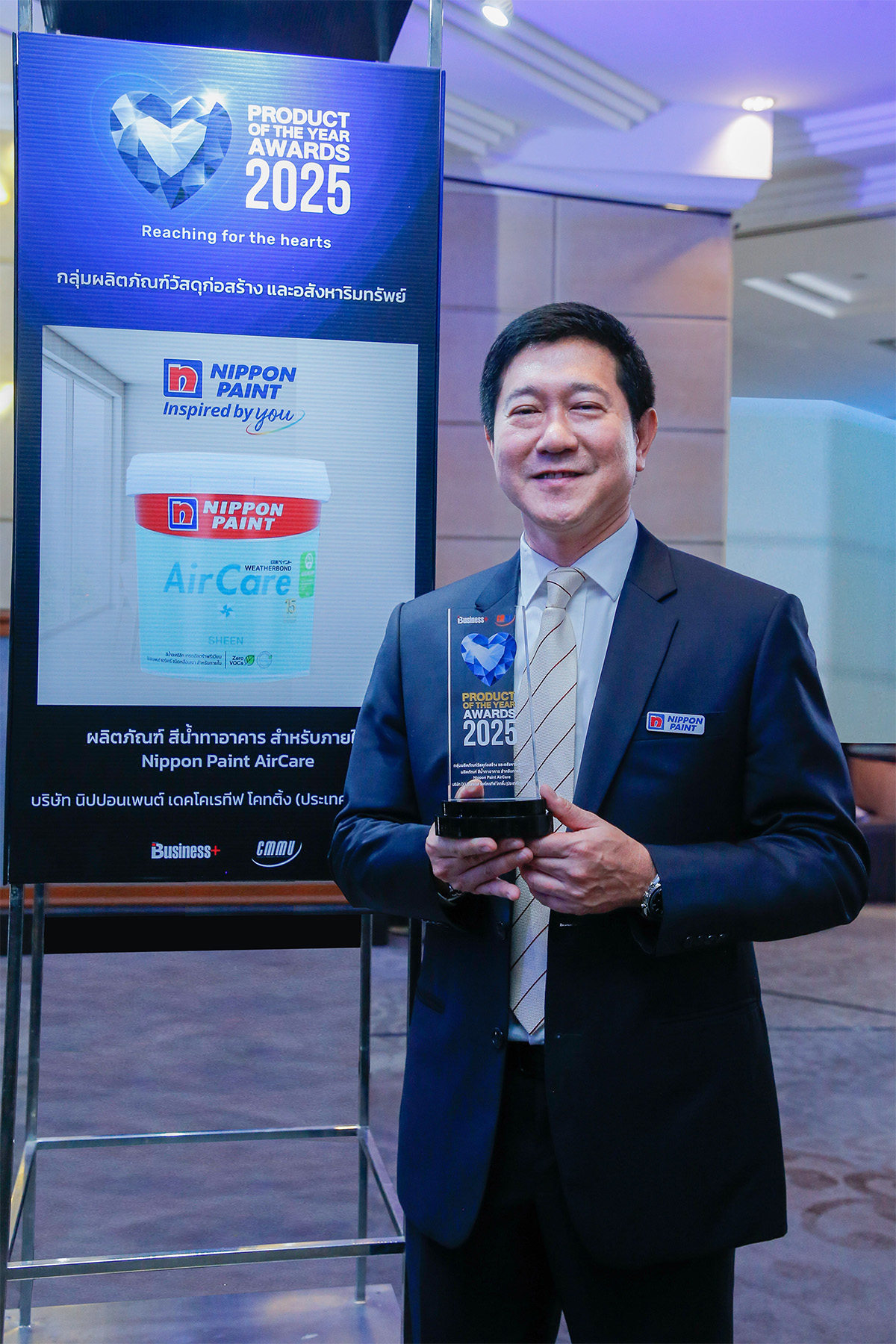 นายวัชระ ศิริฤทธิชัย ผู้จัดการทั่วไป บริษัท นิปปอนเพนต์ เดคโคเรทีฟ โคทติ้ง (ประเทศไทย) จำกัด กล่าวว่า นิปปอนเพนต์ รู้สึกเป็นเกียรติอย่างยิ่งที่ได้รับรางวัล BUSINESS+ PRODUCT OF THE YEAR AWARDS 2025 ในกลุ่มผลิตภัณฑ์วัสดุก่อสร้าง – อสังหาริมทรัพย์ ต่อเนื่องเป็นปีที่ 2 ซึ่งช่วยสะท้อนให้เห็นว่านิปปอนเพนต์เป็นแบรนด์ผู้นำนวัตกรรมสีคุณภาพสูงและมีความเข้าใจความต้องการของผู้บริโภคอย่างลึกซึ้ง โดยผลิตภัณฑ์ ​นิปปอนเพนต์ แอร์แคร์ ที่ได้รับรางวัลเป็นสุดยอดสีนวัตกรรมทาภายในเพื่อสุขภาพ เกรดอัลตร้าพรีเมียม และเป็นผลิตภัณฑ์ระดับเรือธงของแบรนด์มาอย่างยาวนาน รวมถึงปีนี้กลยุทธ์การตลาดของสี นิปปอนเพนต์ แอร์แคร์ ยังยกระดับให้เหนือกว่าไปอีกขั้นผ่านบทบาท “Lifestyle Interior Paint” เป็นสีที่เข้าใจไลฟ์สไตล์ของผู้อยู่อาศัยทุกรูปแบบอย่างแท้จริง โดยเฉพาะกลุ่ม “คนรักสุขภาพ” และกลุ่มที่ต้องการสะท้อนอัตลักษณ์ตัวตนผ่านสุนทรียะความงามภายในบ้าน