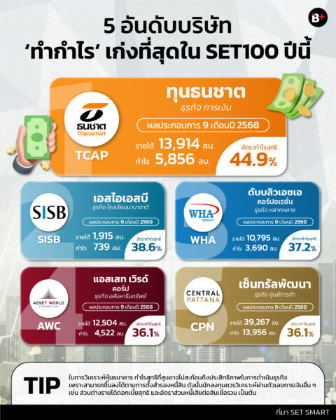 5 อันดับบริษัท ‘ทำกำไรเก่ง’ ที่สุดใน SET100 ปีนี้