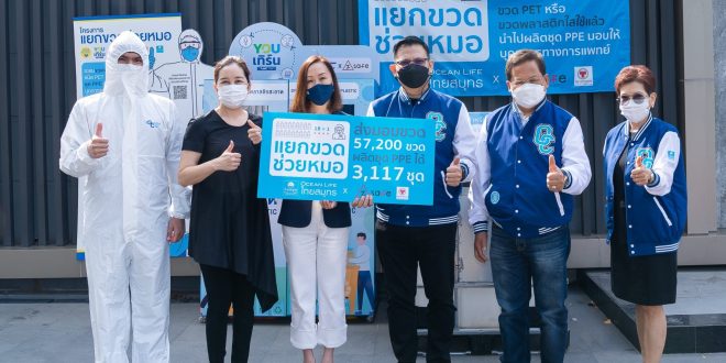 ซึ่งกิจกรรมครั้งนี้ OCEAN LIFE ไทยสมุทร ได้เชิญชวนพนักงานและประชาชนในพื้นที่ใกล้เคียง นำขวดพลาสติกมาร่วมบริจาคที่จุดรับขวด (Drop Point) หน้าสำนักงานใหญ่ อาคารโอเชี่ยนทาวเวอร์ 1 ถนนรัชดาภิเษก และสำนักงานสาขาอโศก โดยเล็งเห็นถึงปัญหาการขาดแคลนอุปกรณ์ที่สำคัญสำหรับบุคลากรด่านหน้าในการต่อสู้กับวิกฤต COVID – 19 อีกทั้งยังเป็นการช่วยลดปริมาณขยะติดเชื้อจากการใช้ชุด PPE แบบใช้ครั้งเดียวทิ้ง รวมทั้งยังช่วยลดปริมาณขยะพลาสติกที่เพิ่มมากขึ้นในปัจจุบัน ซึ่งมีผลทำให้เกิดภาวะโลกร้อน สร้างผลกระทบอันใหญ่หลวงต่อชีวิตความเป็นอยู่ของผู้คนจำนวนมากในอนาคต