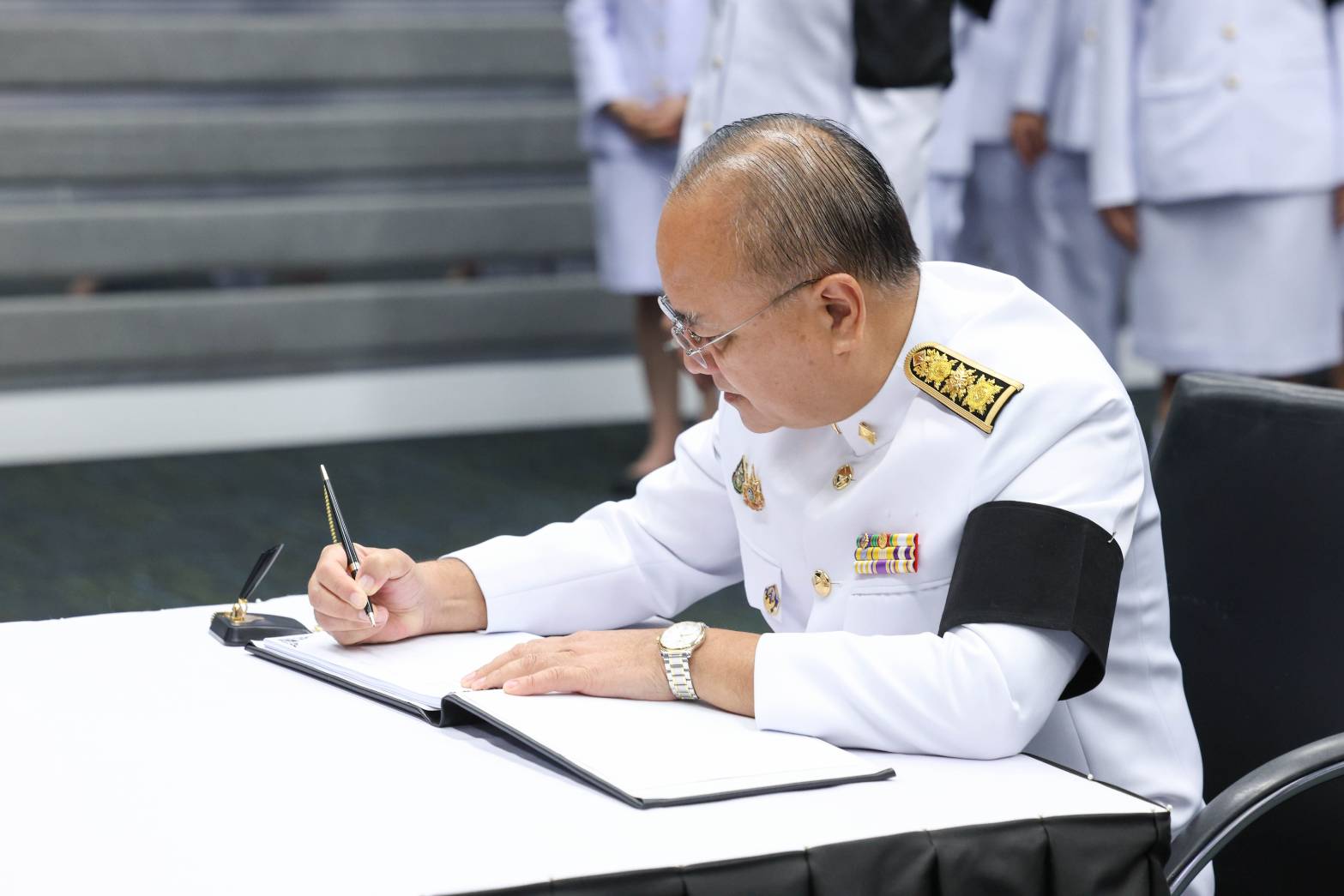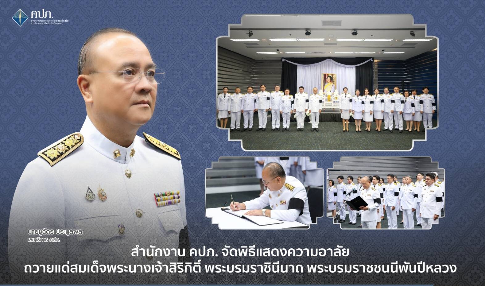 นายชูฉัตร ประมูลผล เลขาธิการ คณะกรรมการกำกับและส่งเสริมการประกอบธุรกิจประกันภัย (เลขาธิการ คปภ.) นำคณะผู้บริหาร และพนักงาน ร่วมพิธีแสดงความอาลัย ถวายแด่สมเด็จพระนางเจ้าสิริกิติ์ พระบรมราชินีนาถ พระบรมราชชนนี พันปีหลวง พร้อมยืนสงบนิ่งเป็นเวลา 93 วินาที และลงนามถวายความอาลัยเบื้องหน้าพระบรมฉายาลักษณ์ สมเด็จพระบรมราชินีนาถ พระบรมราชชนนีพันปีหลวง เพื่อแสดงความจงรักภักดีและน้อมสำนึกในพระมหากรุณาธิคุณอันหาที่สุดมิได้ ณ สำนักงาน คปภ. ถนนรัชดาภิเษก กรุงเทพมหานคร เมื่อวันที่ 3 พฤศจิกายน 2568