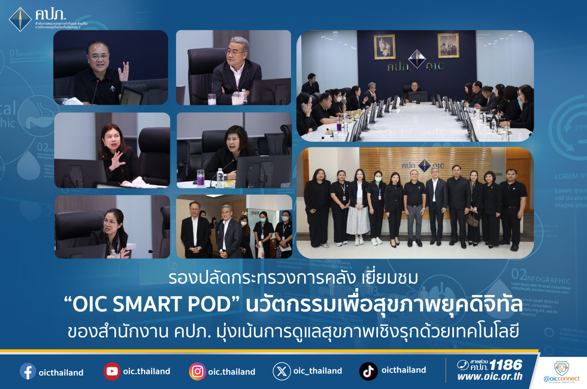 เมื่อวันที่ 30 มกราคม 2569 นายอรรถพล อรรถวรเดช รองปลัดกระทรวงการคลัง พร้อมคณะ เดินทางเข้าเยี่ยมชมการดำเนินงานของสำนักงานคณะกรรมการกำกับและส่งเสริมการประกอบธุรกิจประกันภัย (สำนักงาน คปภ.) โดยติดตามความคืบหน้า โครงการนวัตกรรมเพื่อสุขภาพ “OIC SMART POD” ซึ่งเป็นหนึ่งในโครงการสำคัญที่มุ่งยกระดับคุณภาพชีวิตและสุขภาวะของบุคลากรสำนักงาน คปภ. ผ่านการนำเทคโนโลยีมาประยุกต์ใช้