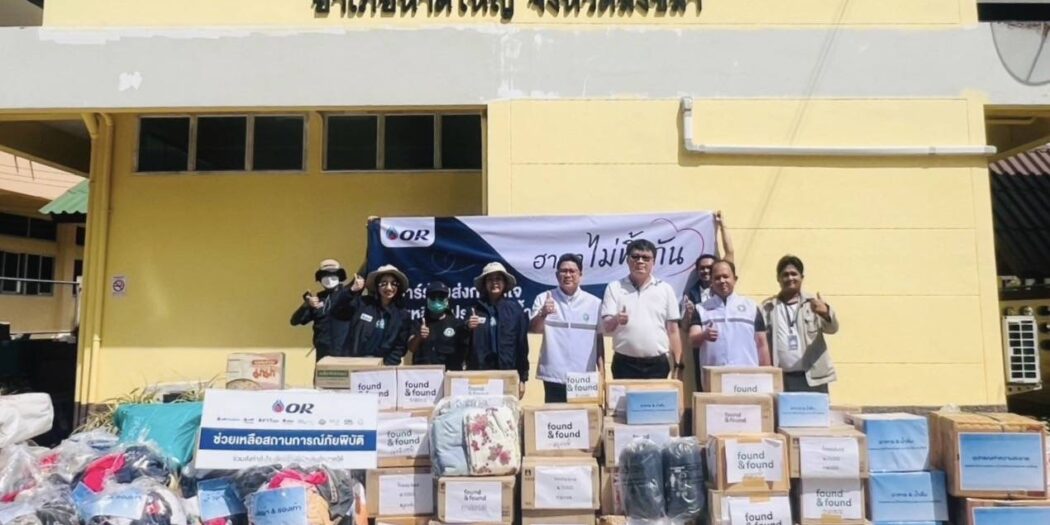 หม่อมหลวงปีกทอง ทองใหญ่ ประธานเจ้าหน้าที่บริหาร บริษัท ปตท. น้ำมันและการค้าปลีก จำกัด (มหาชน) หรือ โออาร์ พร้อมด้วยผู้บริหารและพนักงาน ร่วมส่งมอบของบริจาค เครื่องอุปโภค สิ่งของที่จำเป็น อาทิ เสื้อผ้า รองเท้า เครื่องนอน อาหาร ซึ่งรับบริจาคผ่านโครงการ “ฮาวทูไม่ทิ้งกัน” เพื่อส่งต่อไปยังศูนย์อพยพและศูนย์พักพิงในจังหวัดสงขลาสนับสนุนการดำเนินงานของเจ้าหน้าที่ ตลอดจนมอบให้แก่ผู้ประสบอุทกภัยได้ใช้ประโยชน์