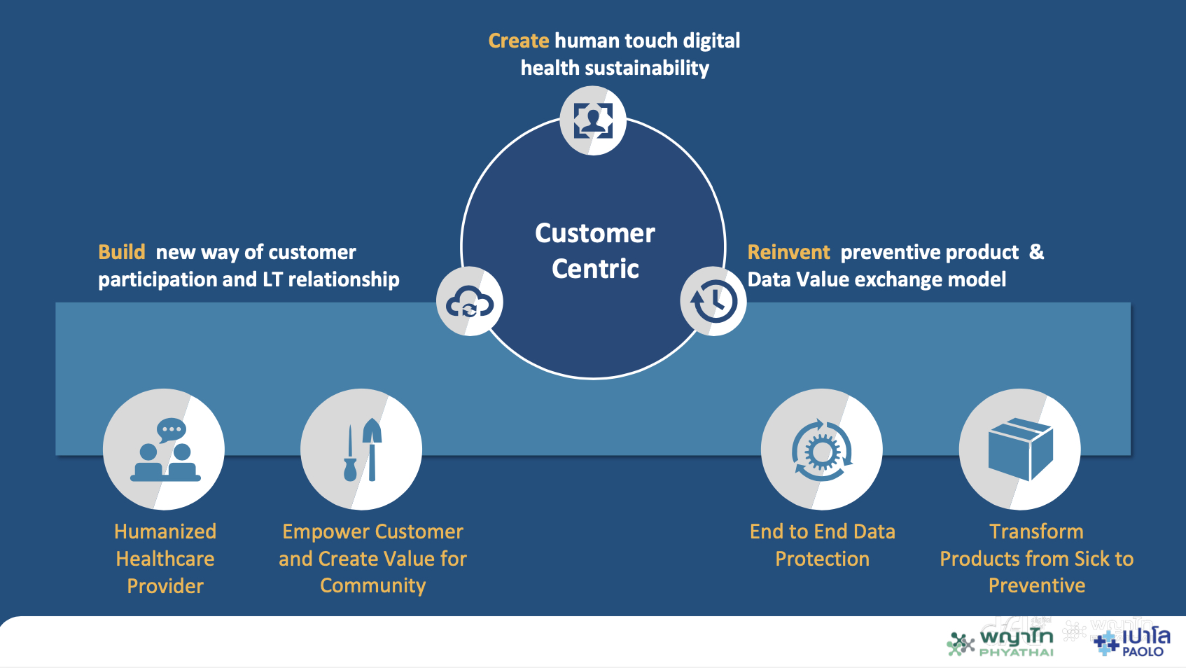 โดย นายศุภกร พะวันนา ผู้อำนวยการสายการตลาดเครือโรงพยาบาลพญาไท-เปาโล ได้ให้ข้อมูลว่า เครือโรงพยาบาลฯ ได้นำเอา Digital Engagement Model เข้ามาปรับใช้ ซึ่งจะให้ความสำคัญกับการเก็บข้อมูล (Data) แล้วส่งต่อให้ทีมทำ Futuristic Data โดยนำข้อมูลเชิงลึกของแต่ละบุคคลมาวิเคราะห์ เพื่อวางแผนโปรแกรมการดูแลรักษาแบบ Human Touch Service มุ่งเน้นเรื่องการส่งเสริมสุขภาพเชิงป้องกัน (Preventive Healthcare) วัตถุประสงค์ คือ ความต้องการให้ลูกค้าเข้าถึงโรงพยาบาลในเรื่องของการดูแลสุขภาพได้ถี่มากขึ้น บ่อยขึ้น แต่เป็นการเข้ามาดูแลสุขภาพที่เน้นเชิงป้องกัน จะไม่ใช่การเข้ามาโรงพยาบาลเพื่อใช้เวลาในการนอนพักรักษาตัว ลดความเสี่ยงของการเจ็บป่วยที่ทำให้เสียค่าใช้จ่ายในด้านการรักษาโรคที่อาจจะเกิดขึ้นในอนาคต ช่วยลดการสูญเสียชีวิตของผู้ป่วยได้มากขึ้น ซึ่งไม่ใช่แค่เพิ่มประสิทธิภาพการรักษาสุขภาพและบริการเท่านั้น แต่ยังใส่ใจเรื่องความปลอดภัยของข้อมูล โดยข้อมูลทั้งหมดของผู้เข้าใช้บริการจะถูกเก็บรักษาอย่างดี ตามพระราชบัญญัติคุ้มครองข้อมูลส่วนบุคคลหรือ PDPA ทำให้ไม่ต้องกังวลว่าข้อมูลเล่านี้จะรั่วไหลและมั่นใจได้ถึงคุณภาพการรักษา รวมถึงการส่งมอบบริการที่ดีโดยยึดความต้องการของลูกค้าเป็นสำคัญ (Human Centric)