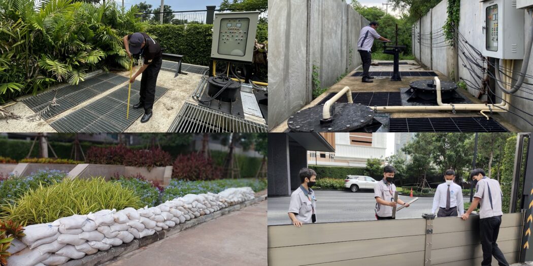 - เสริมอุปกรณ์พิเศษ – สำหรับบางโครงการที่เสี่ยงน้ำท่วม เราจะมีการจัดเตรียมปั๊มพญานาคและปั๊มแบบ Mobile เพื่อใช้ในการระบายน้ำออก รวมถึงกระสอบทรายในการกั้นน้ำ ลดความเสียหายที่เกิดขึ้น