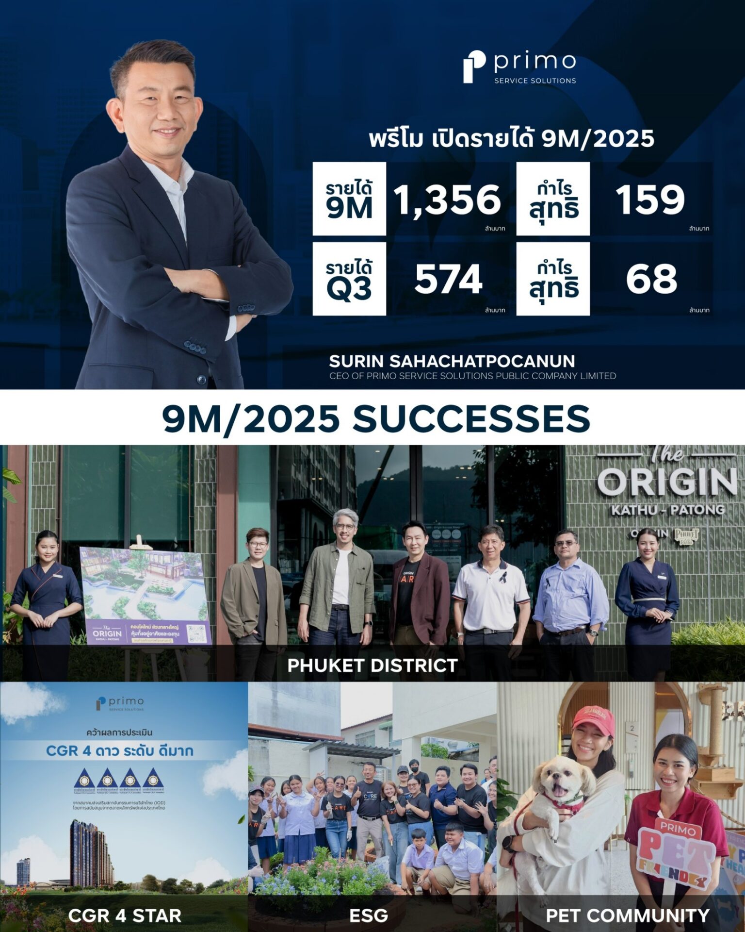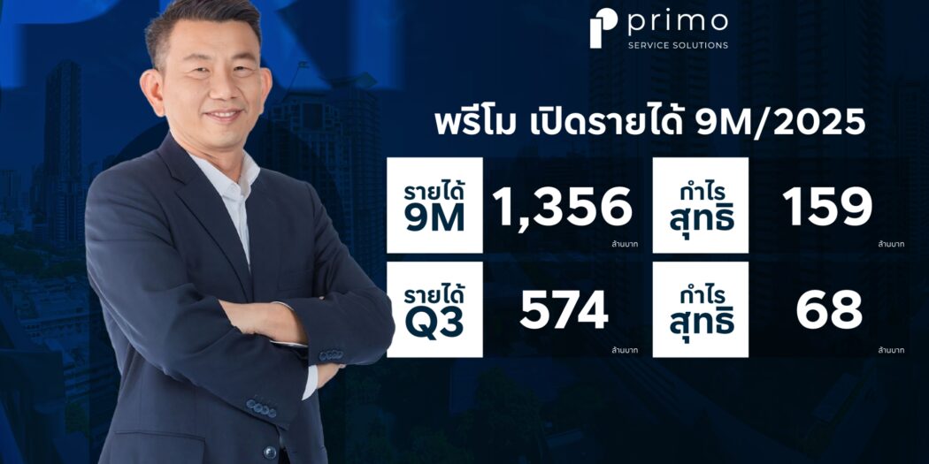 นายสุรินทร์ สหชาติโภคานันท์ ประธานเจ้าหน้าที่บริหาร บริษัท พรีโม เซอร์วิส โซลูชั่น จำกัด หรือ PRI ผู้นำธุรกิจการให้บริการเกี่ยวเนื่องกับอสังหาริมทรัพย์สมัยใหม่แบบครบวงจร เปิดเผยผลประกอบการไตรมาส 3/2568 มีรายได้รวม