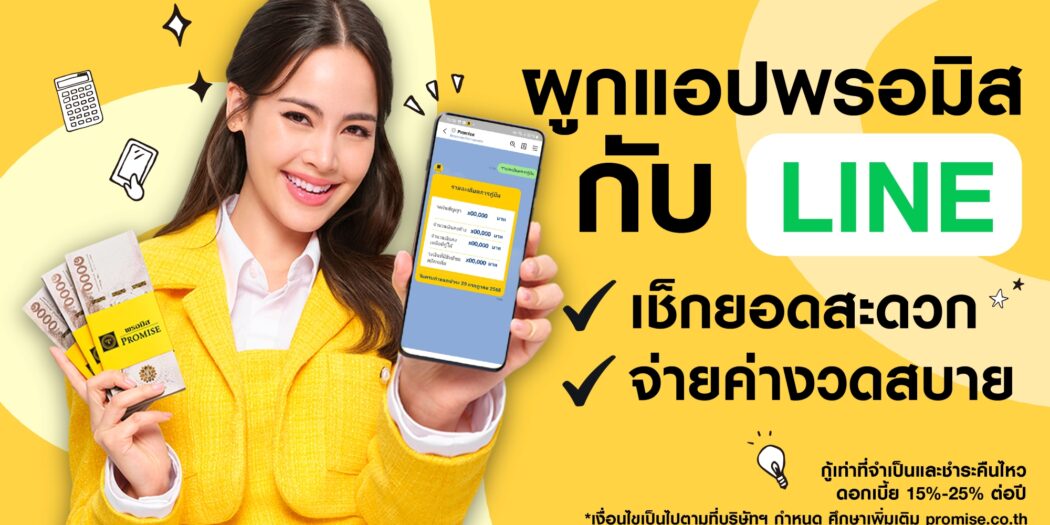 พรอมิส เดินหน้ายกระดับประสบการณ์ลูกค้าผ่านช่องทางที่สะดวกกว่าเดิม ด้วยการเปิดฟีเจอร์เชื่อมต่อแอป PROMISE เข้ากับ LINE อย่างเต็มรูปแบบ ให้ทุกการตรวจสอบข้อมูลและธุรกรรมการเงินรวดเร็วเพียงปลายนิ้ว มุ่งสู่การเป็นผู้ให้บริการสินเชื่อที่เข้าใจและตอบสนองทุกความต้องการได้อย่างทันใจ