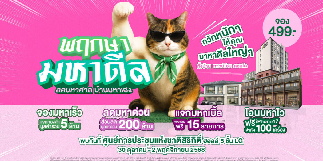 “พฤกษา” ประกาศปลุกดีมานด์ปลายปี ส่งแคมเปญ “พฤกษา มหาดีล” คิกออฟครั้งแรกอย่างยิ่งใหญ่ ในงานมหกรรมบ้านและคอนโด ครั้งที่ 48 ณ ศูนย์ประชุมแห่งชาติสิริกิติ์ ฮอลล์ 5 ระหว่าง 30 ต.ค. – 2 พ.ย.นี้ ยกทัพบ้านและคอนโดคุณภาพกว่า 100 ทำเลทั่วไทย จัดดีลใหญ่ แรงสุด คุ้มสุด จองเริ่มเพียง 499 บาท แจกทองทุกหลัง รวมมูลค่ากว่า 5 ล้านบาท ส่วนลดบ้านและคอนโดรวมกว่า 200 ล้านบาท มอบของแถมเพิ่มสูงสุด 15 รายการ