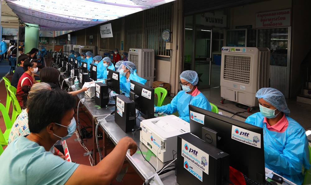 กลุ่ม ปตท. ได้ร่วมวางระบบงานดิจิทัล และเครื่องมืออิเล็กทรอนิกส์ต่างๆ ซึ่งเป็นอุปกรณ์สำคัญในการปฏิบัติการเชิงรุกครั้งนี้ และสนับสนุนพนักงานกลุ่ม ปตท. ร่วมเป็นจิตอาสาในส่วนของการทำงานกับหน่วยบริการ ช่วยบริหารจัดการคิวผู้เข้ารับวัคซีน ประสานงาน อำนวยความสะดวกแก่ประชาชนและบุคลากรทางการแพทย์ นอกจากนั้นยังได้ร่วมสนับสนุนอาหาร น้ำดื่มแก่เจ้าหน้าที่ บุคลากรทางการแพทย์ในหน่วยต่าง ๆ  อีกทั้งจัดเตรียมสินค้าวิสาหกิจชุมชนจากโครงการ ‘ชุมชนยิ้มได้’ ที่ ปตท. ได้ส่งเสริมการฟื้นฟูเศรษฐกิจในภาคเกษตรกร มอบให้กับประชาชนที่มาฉีดวัคซีนอีกด้วย โดยหวังว่า ปตท. จะร่วมเป็นส่วนหนึ่งในการดูแลประชาชนโดยเฉพาะกลุ่มที่จำเป็นต้องเข้าถึงวัคซีนอย่างเร่งด่วน อันจะช่วยยับยั้งการระบาดของ COVID-19 และช่วยขับเคลื่อนต่อลมหายใจเศรษฐกิจของประเทศให้ฟื้นตัวโดยเร็วต่อไป” นายอรรถพล กล่าว