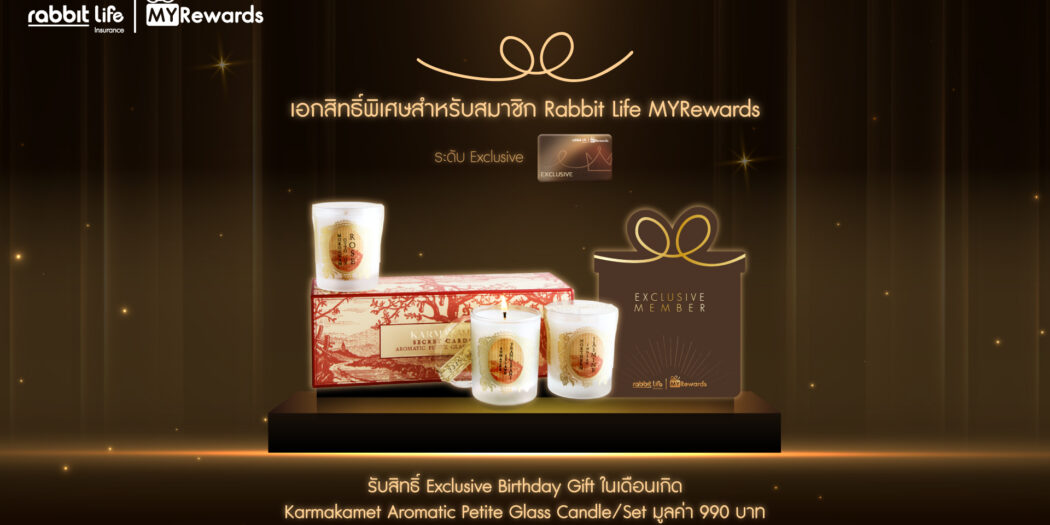 สำหรับแคมเปญ “Rabbit Life MYRewards: Exclusive Birthday Gift 2026” แรบบิท ประกันชีวิต มอบประสบการณ์สุดเอ็กซ์คลูซีฟผ่านของขวัญประจำเดือนเกิด (Exclusive Birthday Gift) ที่คัดสรรมาเพื่อเติมเต็มช่วงเวลาแห่งการดูแลตัวเองและการพักผ่อนจากชีวิตประจำวัน โดยสมาชิก Rabbit Life MYRewards ระดับ Exclusive จะได้รับ ชุดเทียนหอม Aromatic Petite Glass Candles จาก Karmakamet มูลค่า 990 บาท เพื่อร่วมเฉลิมฉลองในวันสำคัญ ตั้งแต่วันนี้ – 28 กุมภาพันธ์ 2570