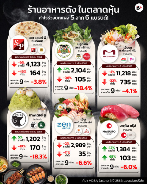 โดยบริษัทที่มีกำไรลดลงมากที่สุดก็คือ เอส แอนด์ พี ซินดิเคท เจ้าของร้าน S&P ที่มีรายได้และกำไรในไตรมาส 3 ลดลง 12% และ 33% ตามลำดับ ส่งผลให้ช่วง 9 เดือนแรกของปี รายได้และกำไรลดลง 9% และ 46%