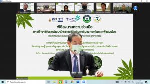 มหาวิทยาลัยเทคโนโลยีราชมงคลธัญบุรี (มทร.ธัญบุรี)โดย ผศ.ดร.สมหมาย ผิวสอาด อธิการบดี ร่วมกับ บริษัท ทีเอชซีจี กรุ๊ป จำกัด โดยนายธนารัตน์ จิตต์พายัพ กรรมการผู้จัดการ , พร้อมด้วยนางอรพินทร์ พญาพิทักษ์สกุล ประธานที่ปรึกษาวิสาหกิจชุมชนผู้ปลูกและแปรรูปบุกเขาค้อ จ.เพชรบูรณ์ นายพลวรรธน์ พญาพิทักษ์สกุล รองประธานวิสาหกิจชุมชนกลุ่มปลูกและแปรรูปบุก,เกษตรอินทรีย์บ้านทุ่งแพม จ.แม่ฮ่องสอน และนายณัฐวรรธน์ วรพนิตกุล รองประธานวิสาหกิจชุมชนทุ่งนางแลสมุนไพรเพื่อการแพทย์ ได้ร่วมพิธีลงนามบันทึกข้อตกลงความร่วมมือว่าด้วยการศึกษา วิจัย และพัฒนาโครงการวิจัย กัญชา กัญชง กระท่อม และพืชสมุนไพร เพื่อใช้ประโยชน์ทางการแพทย์ เชิงพาณิชย์และอุตสาหกรรม โดยมี ศ.ดร.พิชัย สนแจ้ง และ ผศ.ดร.ภูธดา คุนผลิน ที่ปรึกษา บริษัท ทีเอชซีจี กรุ๊ป จำกัด ร่วมเป็นสักขีพยาน