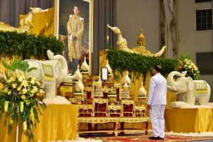 ผศ.ดร. สมหมาย ผิวสอาด พร้อมภริยา ประจำที่ ณ บริเวณพิธี ผศ.อภิชาติ ไก่ฟ้า อัญเชิญประกาศสำนักนายกรัฐมนตรี รศ.ดร.สุจิระ ขอจิตต์เมตต์ รองอธิการบดีมหาวิทยาลัยเทคโนโลยีราชมงคลธัญบุรี อ่านประกาศสำนักนายกรัฐมนตรี เรื่อง แต่งตั้งอธิการบดีมหาวิทยาลัยเทคโนโลยีราชมงคลธัญบุรี หลังสิ้นสุดการอ่านประกาศสำนักนายกรัฐมนตรี อธิการบดี และภริยาเปิดกรวยถวายราชสักการะ ถวายบังคมหน้าพระบรมฉายาลักษณ์ พระบาทสมเด็จพระวชิรเกล้าเจ้าอยู่หัว จากนั้น อธิการบดีกล่าวรับสนองพระบรมราชโองการโปรดเกล้าฯ กล่าวจบบรรเลงเพลงสรรเสริญพระบารมี พระพรหมบัณฑิต รักษาการเจ้าคณะใหญ่หนกลาง กรรมการมหาเถรสมาคม เจ้าอาวาสวัดประยุรวงศาวาสวรวิหาร เป็นประธานเจริญชัยมงคลคาถา