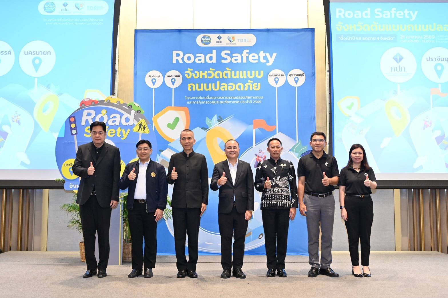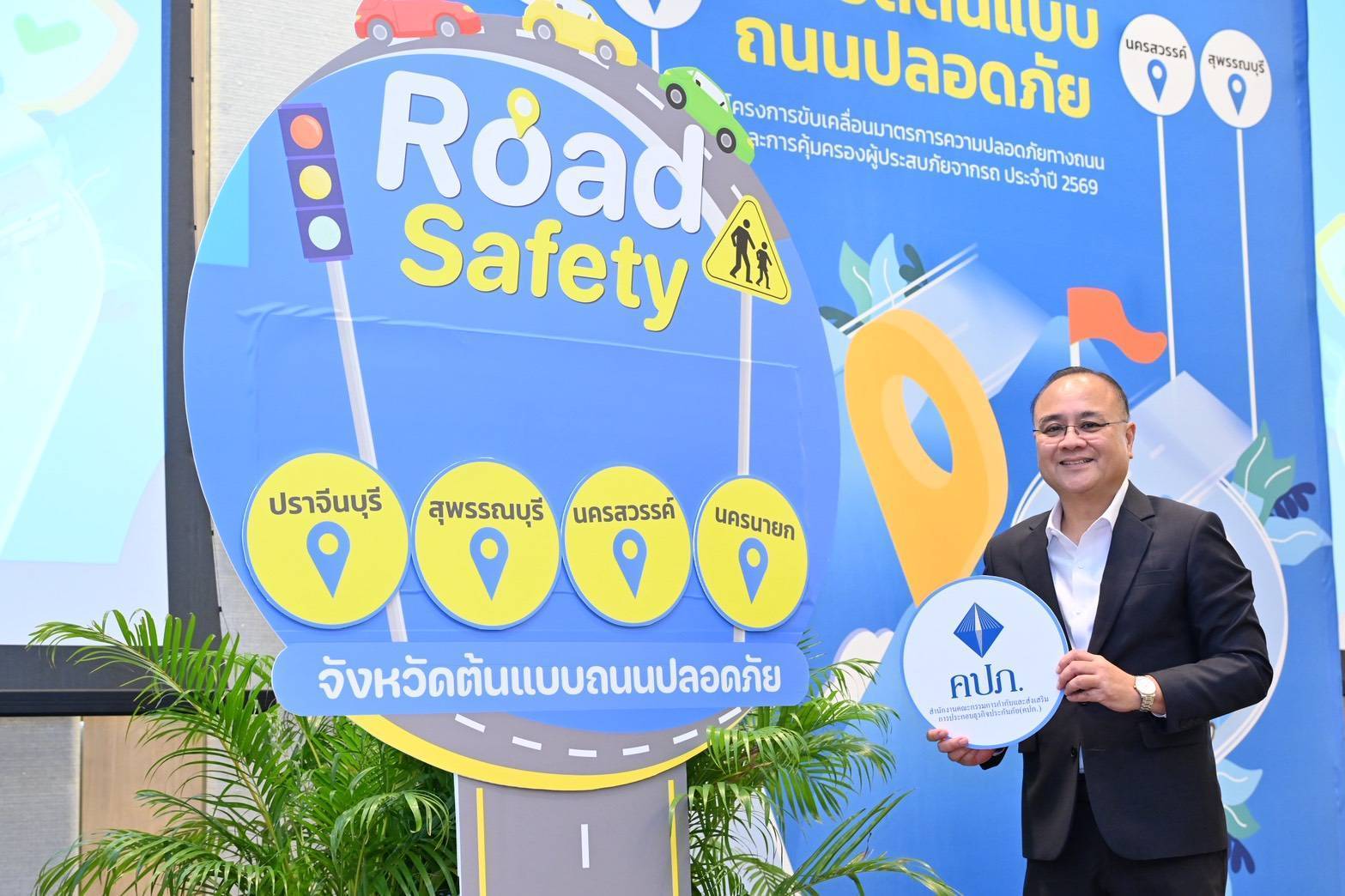 สำนักงานคณะกรรมการกำกับและส่งเสริมการประกอบธุรกิจประกันภัย (สำนักงาน คปภ.) นำโดย นายชูฉัตร ประมูลผล เลขาธิการ คปภ. ร่วมกับ จังหวัดปราจีนบุรี นครนายก นครสวรรค์ สุพรรณบุรี ภาคธุรกิจประกันภัย และสถาบันวิจัยเพื่อการพัฒนาประเทศไทย (ทีดีอาร์ไอ) จัดงานแถลงข่าว “Road Safety จังหวัดต้นแบบถนนปลอดภัย” ภายใต้โครงการขับเคลื่อนมาตรการความปลอดภัยทางถนนและการคุ้มครองผู้ประสบภัยจากรถ ประจำปี 2569 โดยมีผู้บริหารสำนักงาน คปภ. หน่วยงานภาครัฐ ภาคธุรกิจประกันภัย ภาคประชาสังคม สถาบันวิชาการ สื่อมวลชน เข้าร่วม ณ โรงแรมอัศวิน แกรนด์ คอนเวนชัน กรุงเทพมหานคร