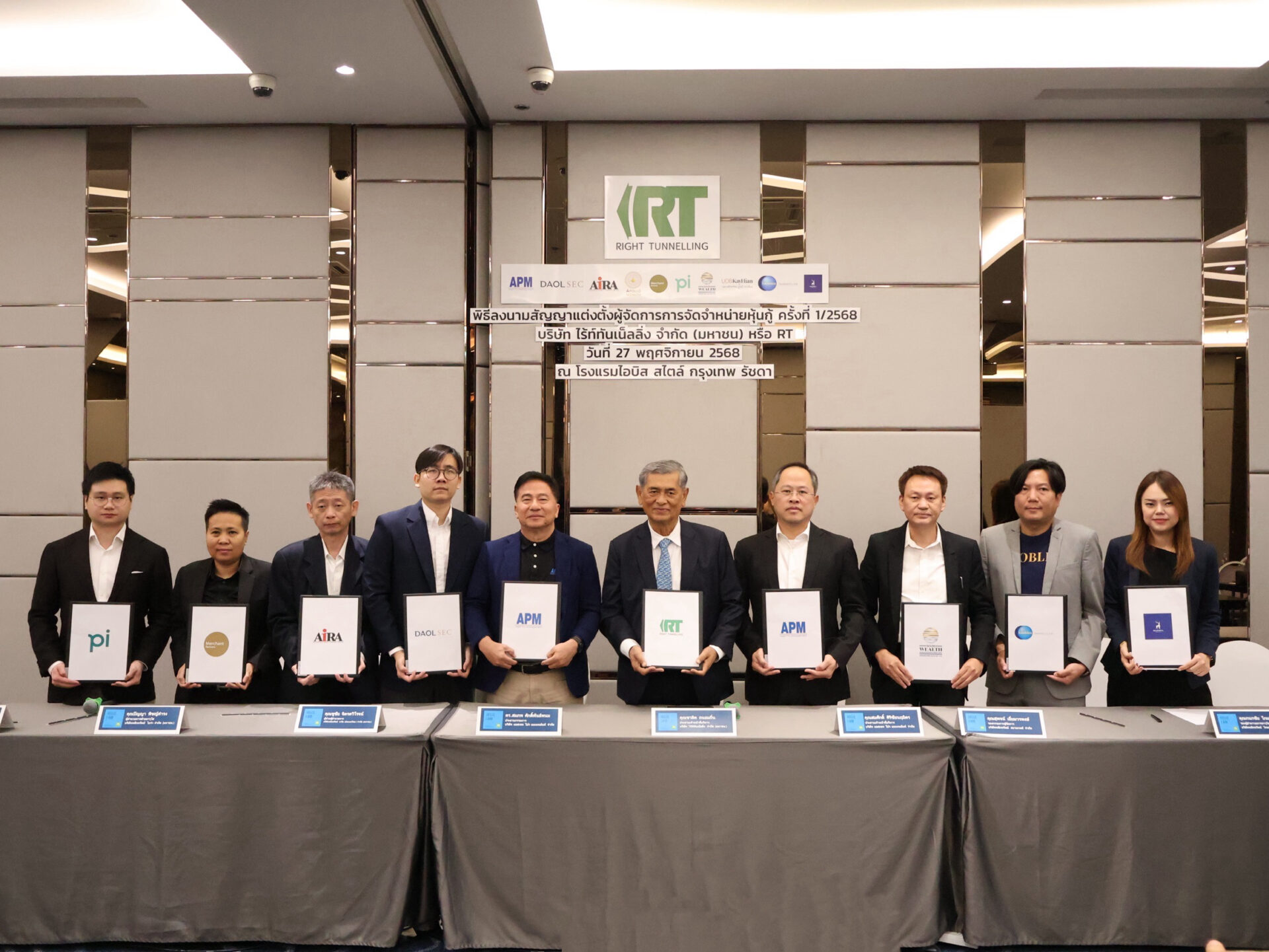 RT แต่งตั้ง DAOL MPS AIRA APOLLO PI SIAM UOBKHST GLOBLEX BLUE ออกหุ้นกู้ครั้งที่ 1/68 ชนิดระบุชื่อผู้ถือ ประเภทไม่ด้อยสิทธิ ไม่มีประกัน มีผู้แทนผู้ถือหุ้นกู้ จำนวน 2 ชุด ได้แก่ ชุดที่ 1 อายุ 2 ปี อัตราดอกเบี้ย 7.20% ต่อปี ชุดที่ 2 อายุ 3 ปี อัตราดอกเบี้ย 7.35% ต่อปี จ่ายดอกเบี้ยทุก 3 เดือน ผู้ออกหุ้นกู้มีสิทธิไถ่ถอนก่อนครบกำหนด มูลค่ารวมทั้งสิ้นไม่เกิน 180 ล้านบาท แก่ผู้ลงทุนสถาบัน ผู้ลงทุนรายใหญ่ เพื่อชำระคืนหนี้หุ้นกู้ RT262A จองซื้อ 1-3 ธ.ค. 68 เสนอขาย 4 ธ.ค. 68 APM ที่ปรึกษาทางการเงิน ตอกย้ำความมั่นใจนักลงทุน RT ผู้เชี่ยวชาญงานก่อสร้างเฉพาะทางแนวโน้มเติบโตต่อเนื่อง