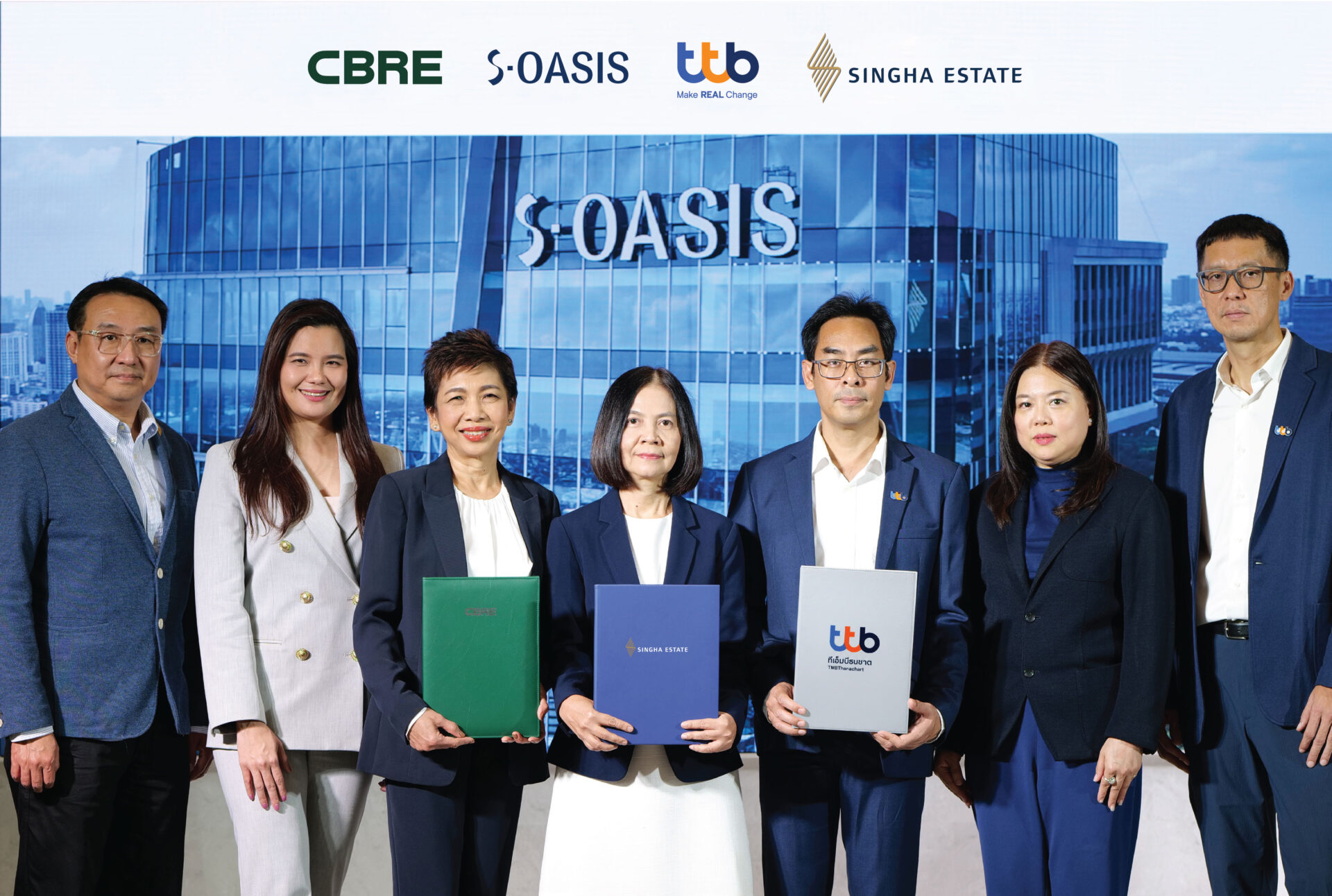 บริษัท สิงห์ เอสเตท จำกัด (มหาชน) หรือ (SET: S) ตอกย้ำความสำเร็จในฐานะผู้นำการพัฒนาอาคารสำนักงานเกรด A ที่ผสานแนวคิด “เป็น/อยู่/ดีและยั่งยืน” ด้วยการลงนามสัญญาเช่าพื้นที่โครงการ S-OASIS ขนาดรวมกว่า 10,000 ตารางเมตร ร่วมกับ ทีเอ็มบีธนชาต หรือ ทีทีบี และที่ปรึกษาด้านอสังหาริมทรัพย์ระดับโลก บริษัท ซีบีอาร์อี (ประเทศไทย) จำกัด