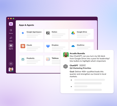 - ChatGPT ใน Slack: แอป ChatGPT สำหรับ Slack จะช่วยให้ทีมงานสามารถดึงข้อมูลเชิงลึก ร่างข้อความ และสรุปบทสนทนาที่ซับซ้อนได้อย่างรวดเร็วและราบรื่นในระหว่างการทำงาน การรวมระบบนี้ยังช่วยปรับปรุงผลการค้นหาใน Slack โดยใช้ความรู้ภายในจากเครื่องมือที่เชื่อมต่อกับ ChatGPT