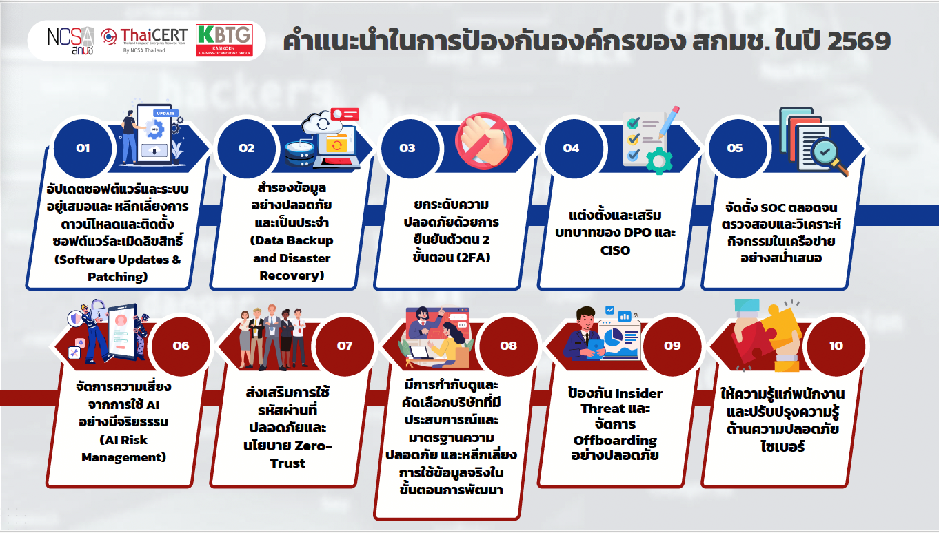 Ransomware มีรูปแบบซับซ้อนขึ้น องค์กรต้องเตรียมทั้งการป้องกัน การตรวจจับ และแผนฟื้นฟูระบบควบคู่กัน - ความปลอดภัยต้องฝังตั้งแต่ต้นและทำตามกฎหมายอย่างเคร่งครัด ตั้งแต่การออกแบบระบบ การพัฒนาซอฟต์แวร์ การใช้บริการตรวจจับภัยแบบครบวงจร ไปจนถึงการปฏิบัติตามกฎหมายและข้อกำกับด้านไซเบอร์