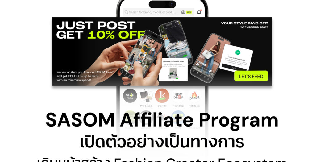 SASOM แพลตฟอร์มรวมสินค้าแฟชั่นและของสะสมของแท้ ประกาศเปิดตัว SASOM Affiliate Program (SAP) อย่างเป็นทางการ เดินหน้าสร้าง Fashion Creator Ecosystem ที่เชื่อมต่อ Creator ผู้บริโภคและตลาดแฟชั่นเข้าไว้ด้วยกันอย่างเป็นระบบ พร้อมวางรากฐานระยะยาวในการขับเคลื่อน Creator Economy ควบคู่ไปกับการเติบโตของอุตสาหกรรมแฟชั่นและสินค้าสะสมในประเทศไทย